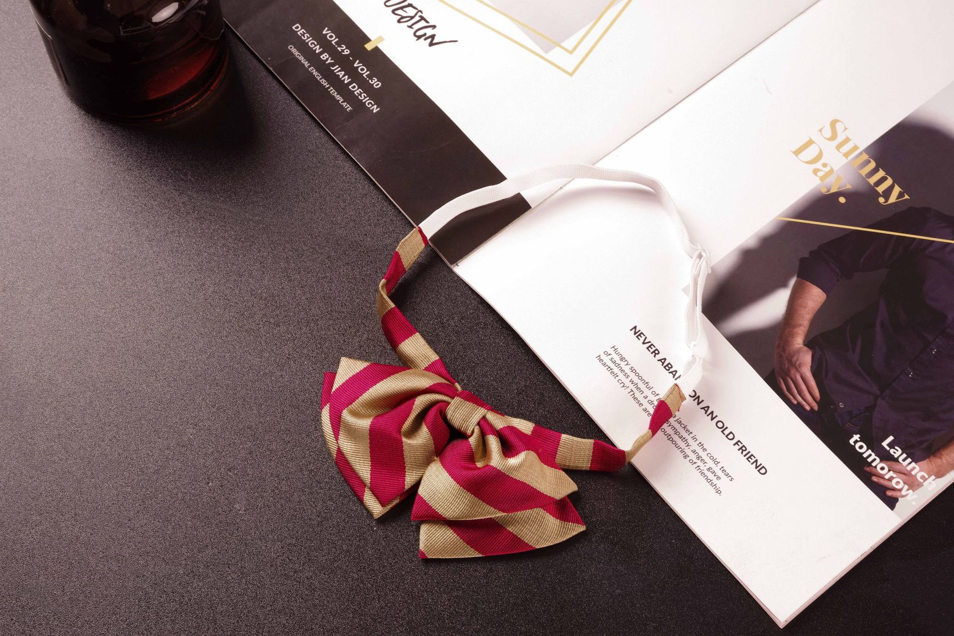 • 빨간색과 노란색 줄무늬 나비 넥타이