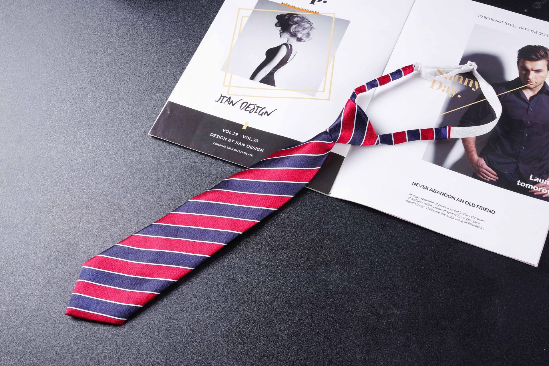 • 빨간색과 파란색 줄무늬 나비 넥타이