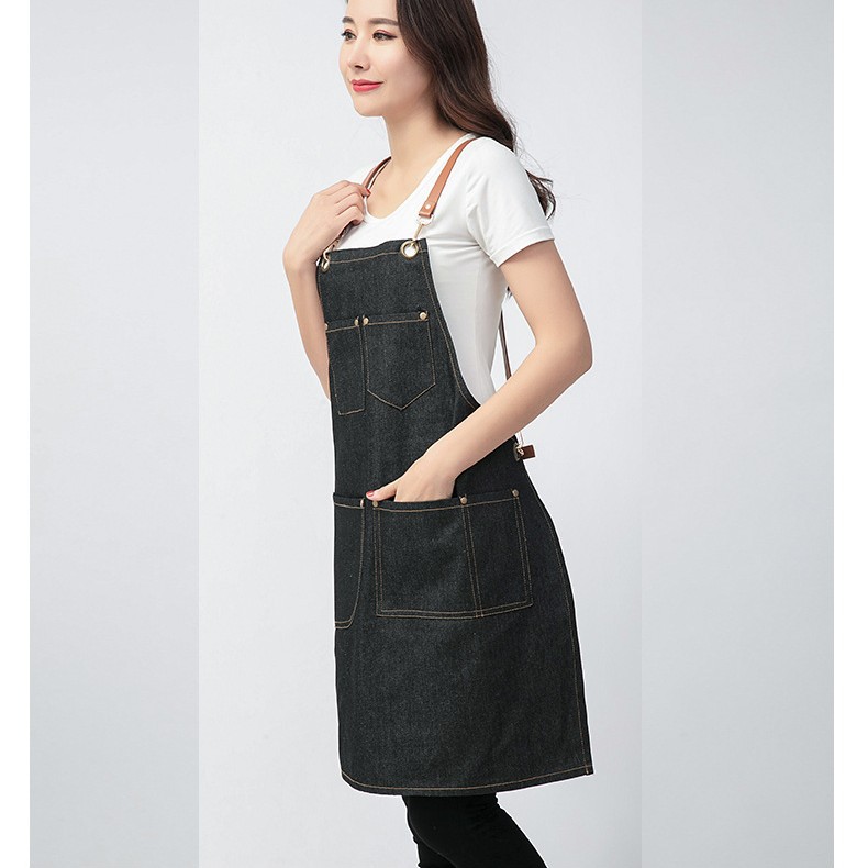 데님 앞치마 바지 커피 숍 레스토랑 꽃 가게 오염 방지 패션 한국 벨트 스트랩 사용자 정의 로고