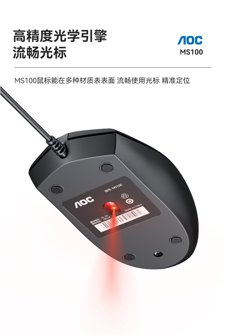 AOC 마우스 MS100 유선 게임 USB 마우스 노트북 데스크탑 컴퓨터 홈 비즈니스 사무실 마우스