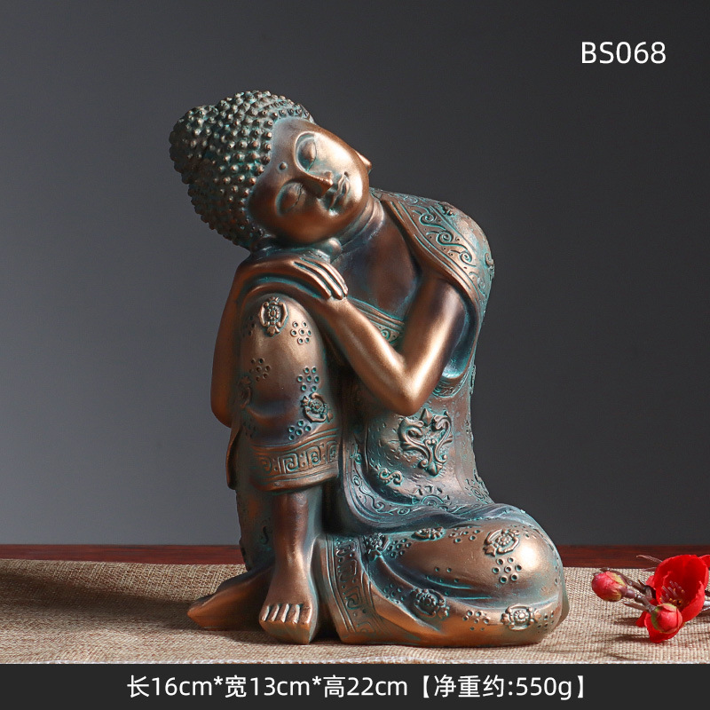 동남아시아 스타일 컬러 부처 동상 장식품 수지 공예 태국 레스토랑 모조 청동 잠자는 부처 동상 장식품