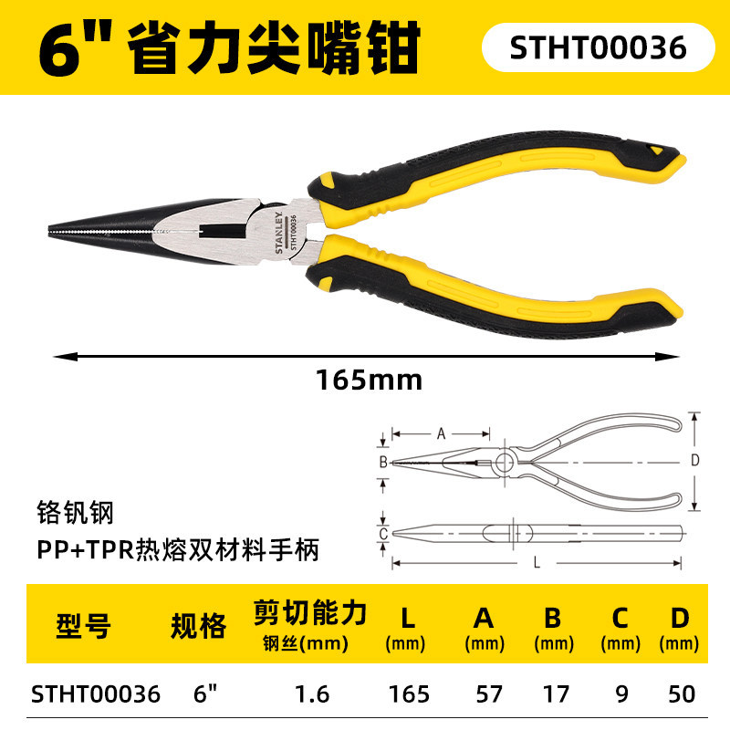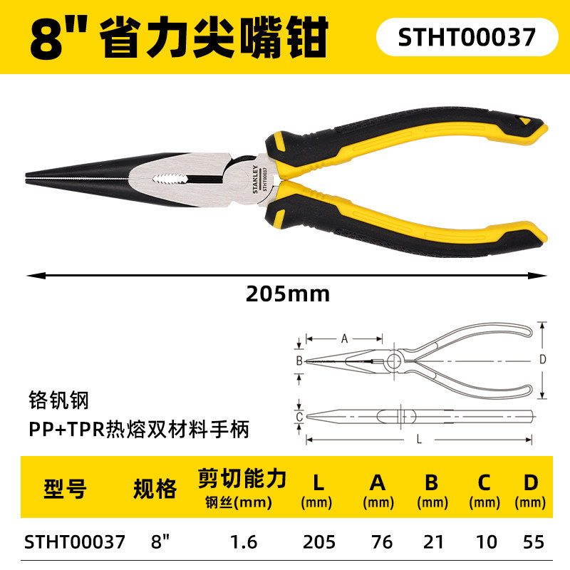 스탠리 전문 뾰족한 코 펜치 6 인치 8 인치 펜치 긴 코 펜치 하드웨어 도구 다기능 침 펜치 뾰족한 입