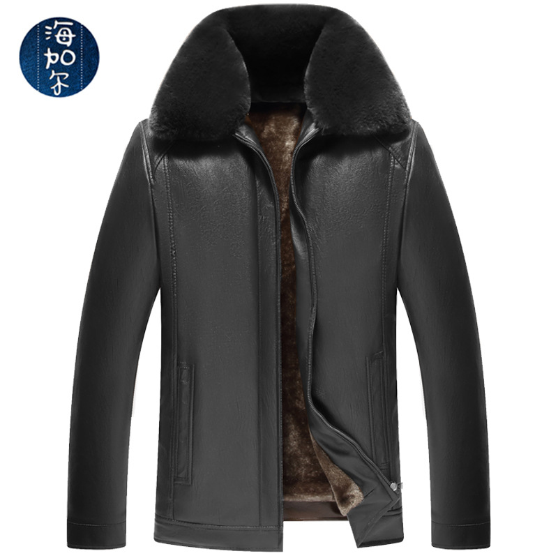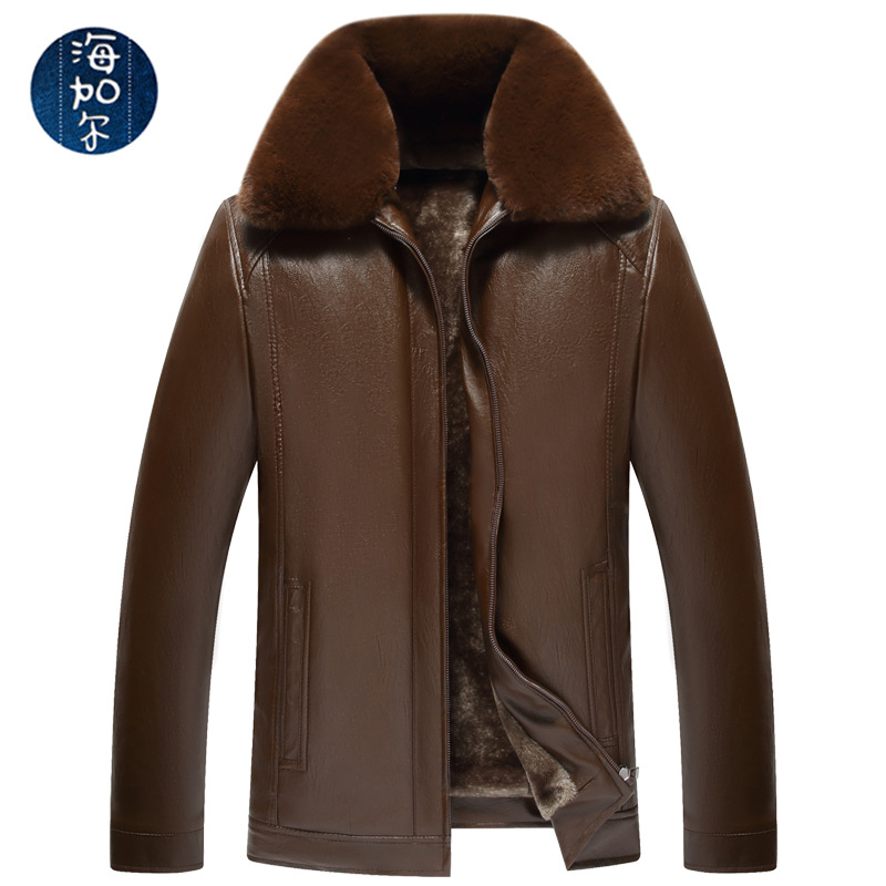 위성 TV 공간 벨벳 같은 스타일 중년 및 노인 따뜻한 가죽 자켓 남성용 옷깃 모피 칼라 이동식 기모 두꺼운 가죽 자켓
