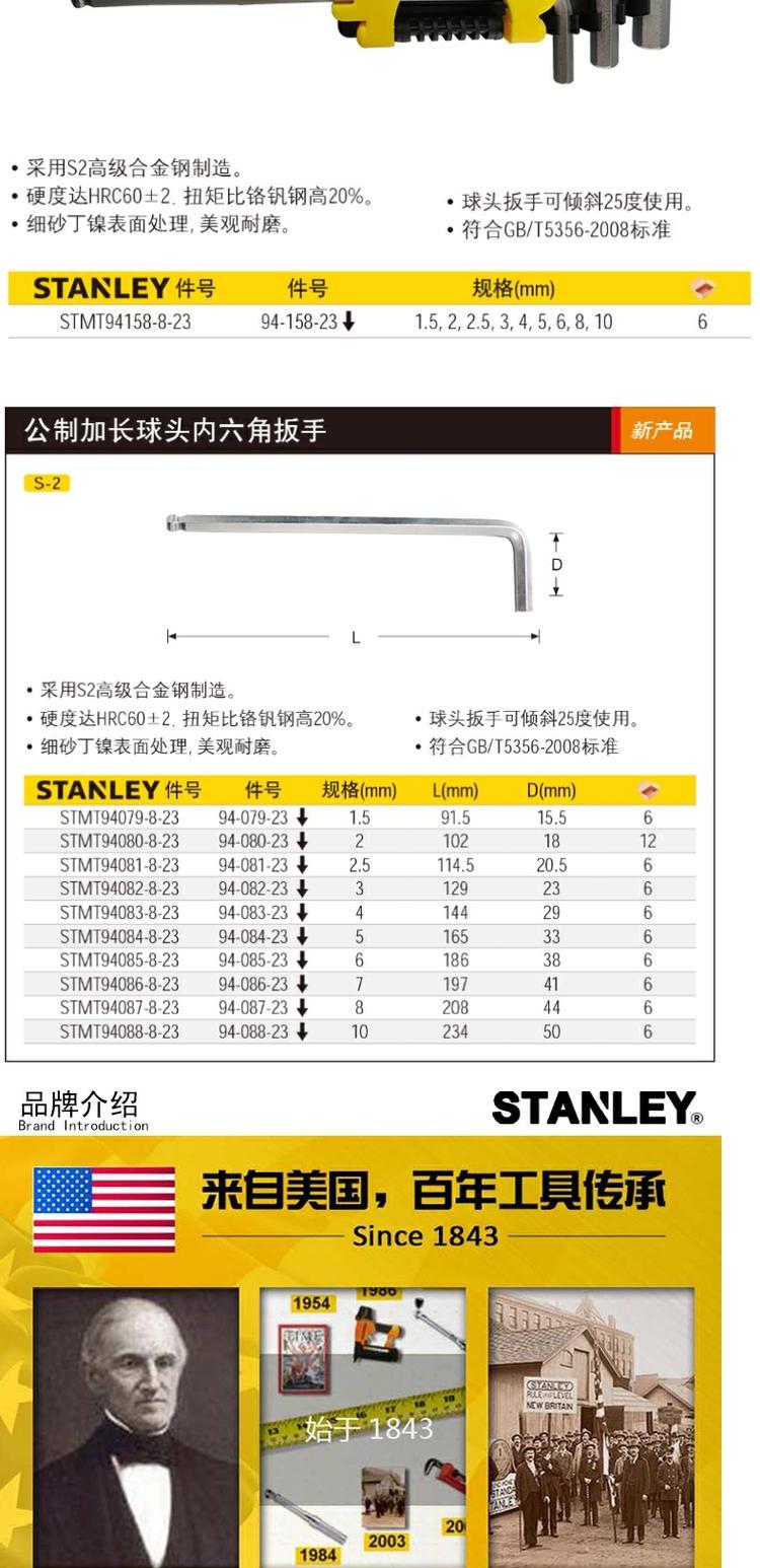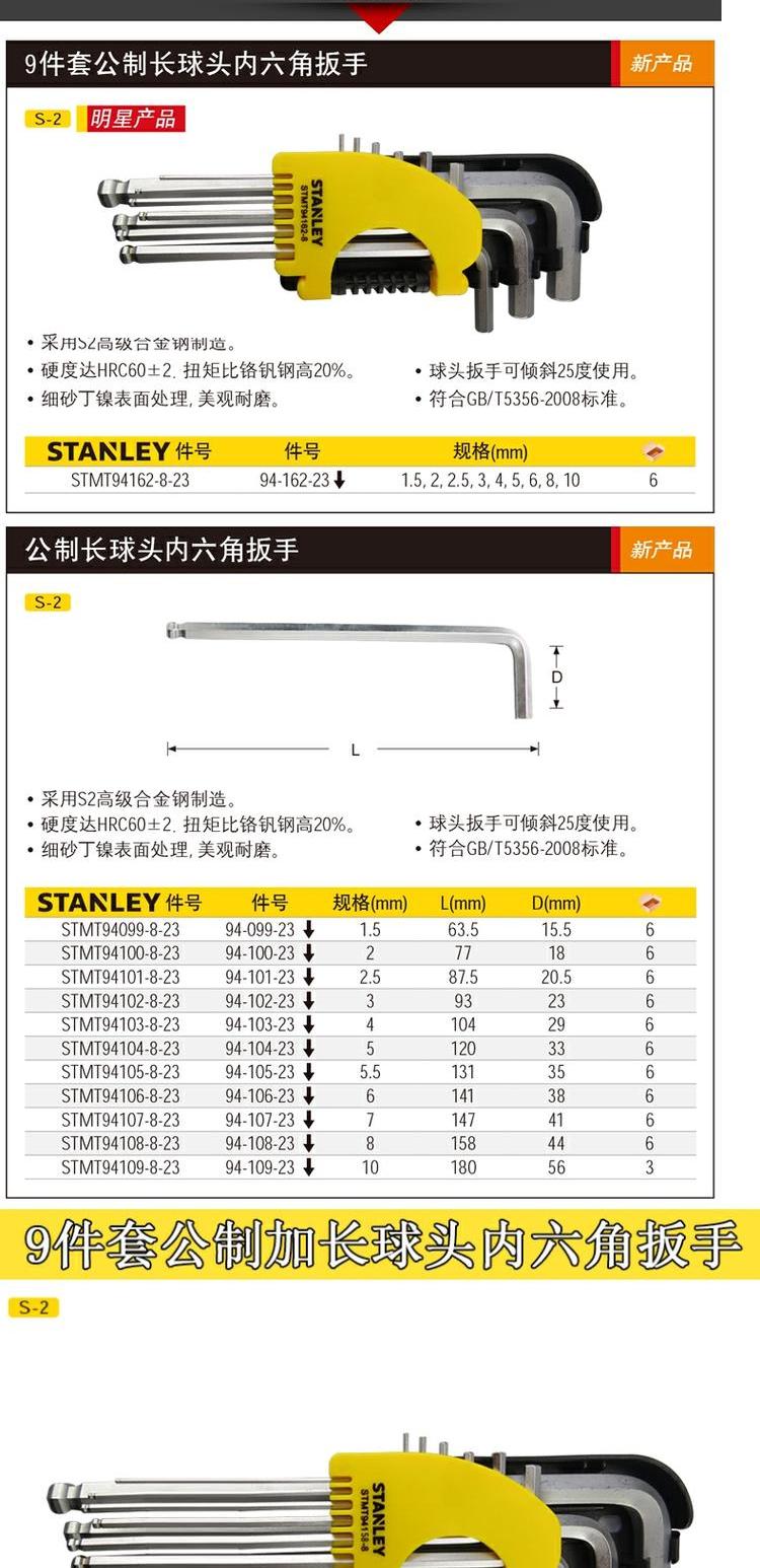 스탠리 미터법 길어진 볼 헤드 육각 렌치 세트 단일 육각 손 육각 렌치스토어 가기