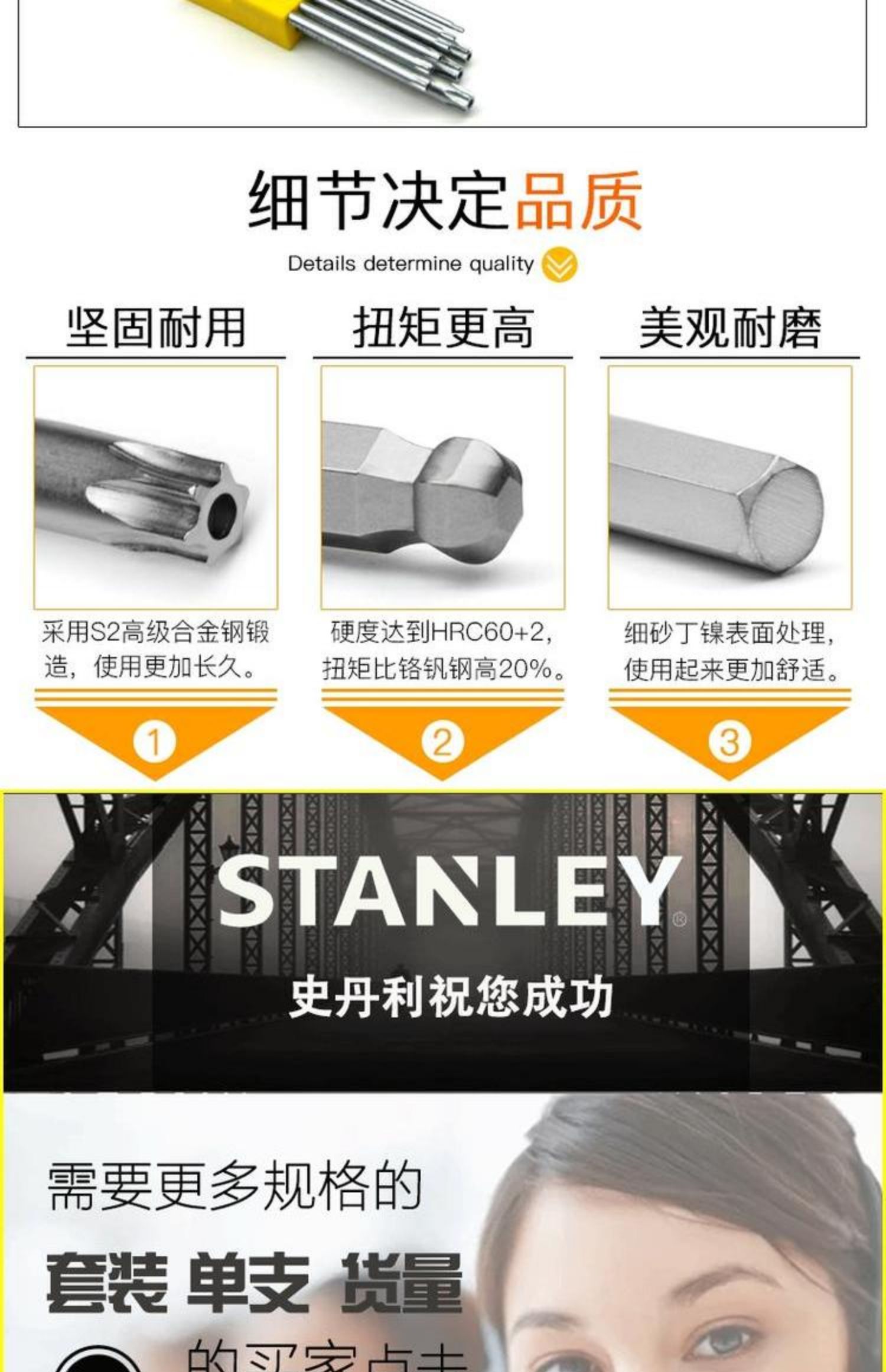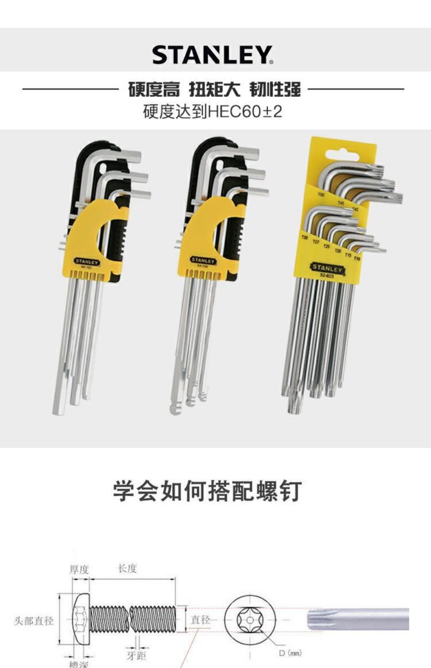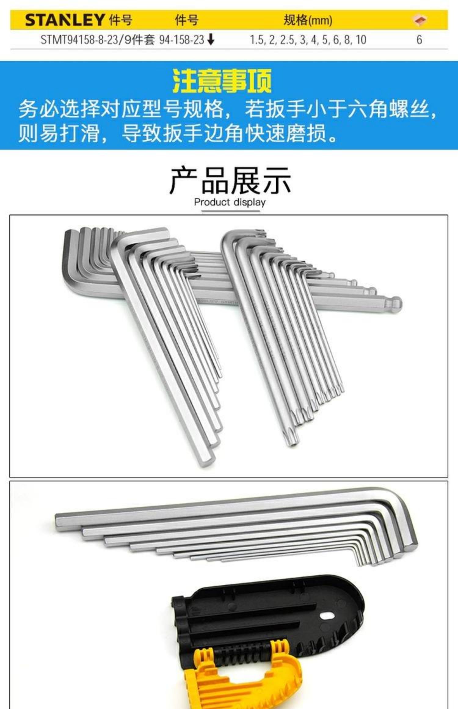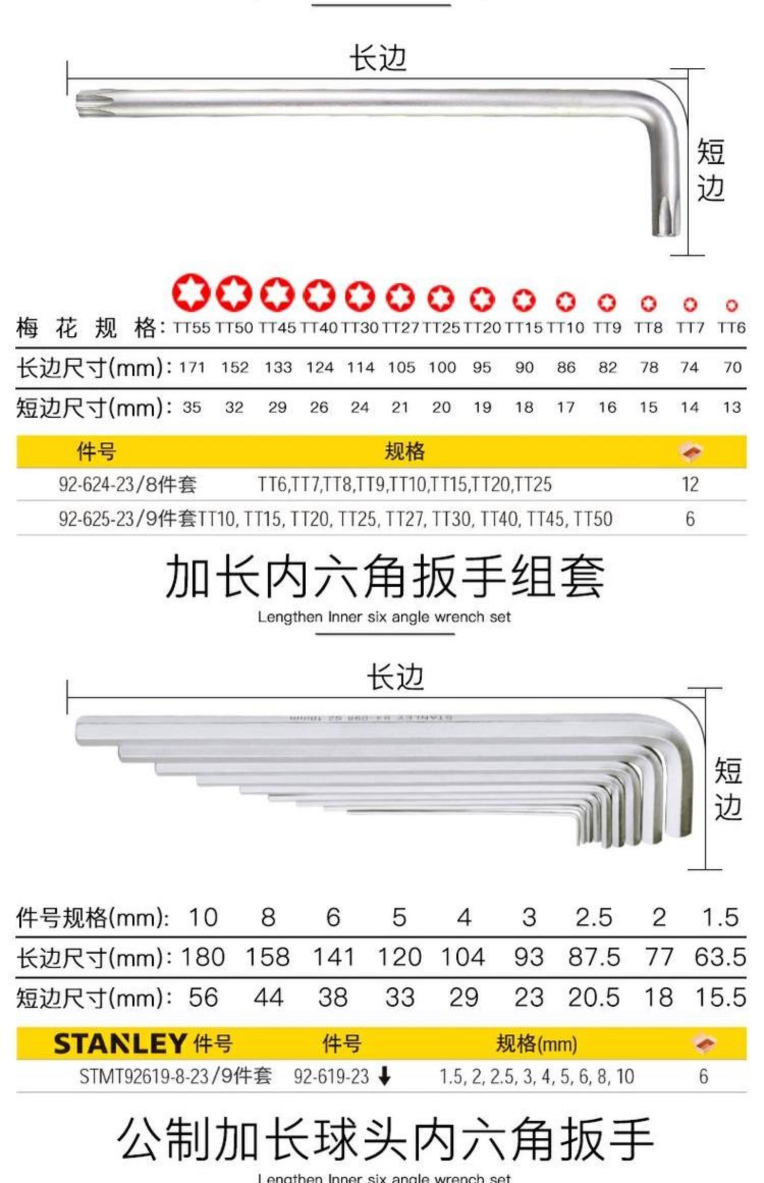 스탠리 롱 L 자형 중간 구멍 플라워 렌치 중공 Torx 키 드라이버 스타 알렌 렌치 T6/7/8