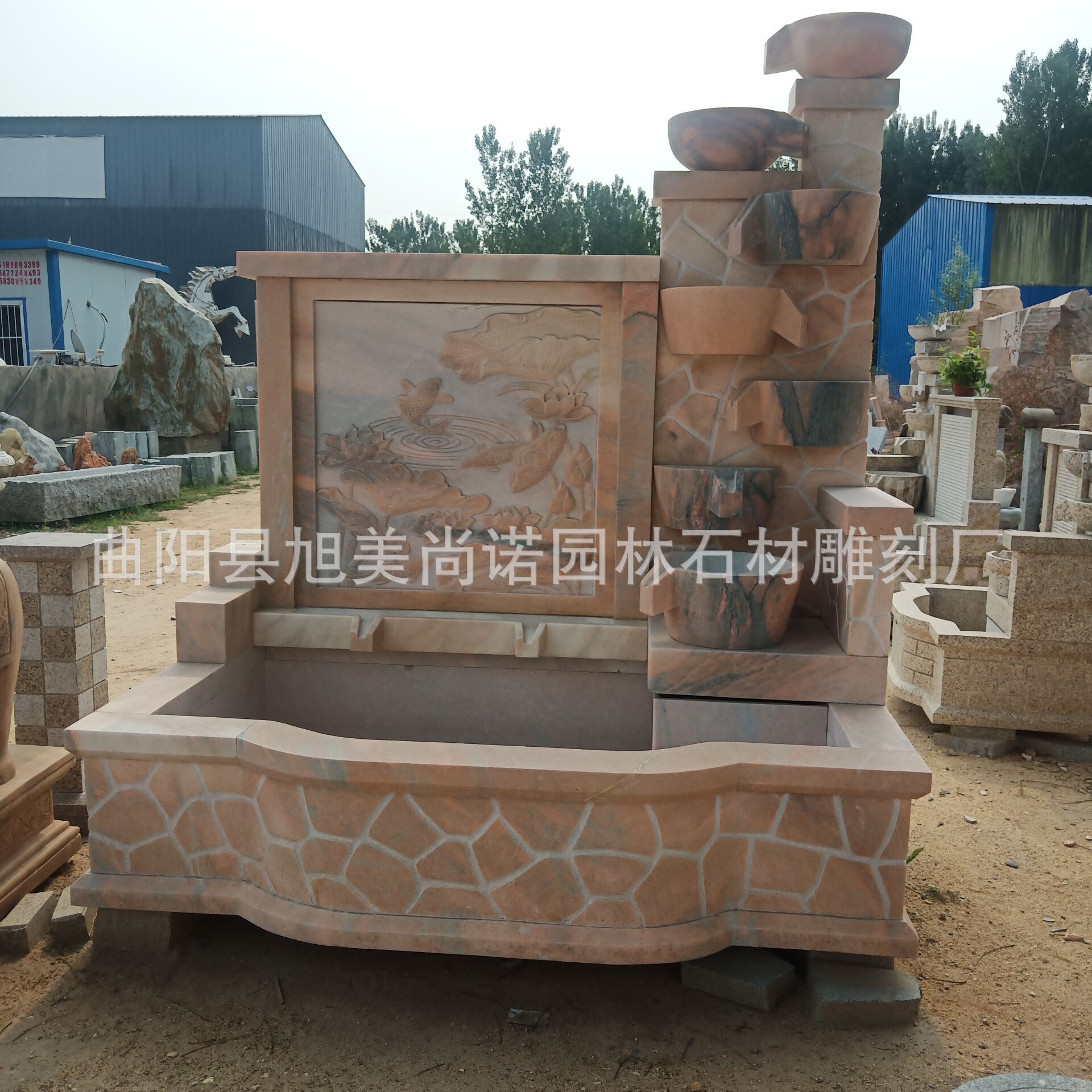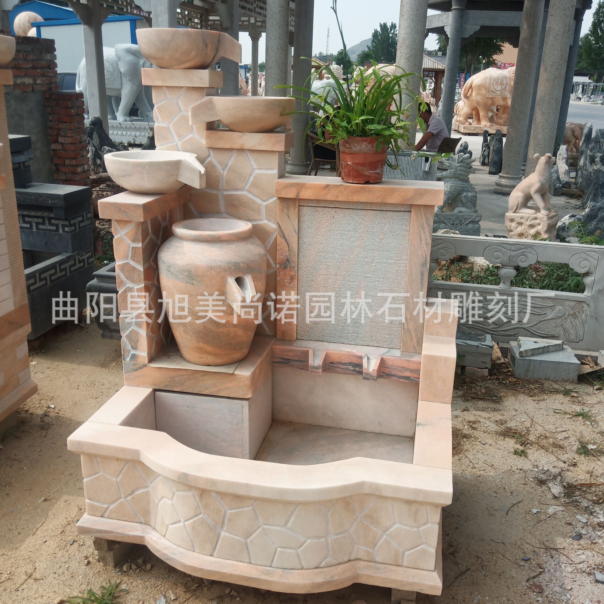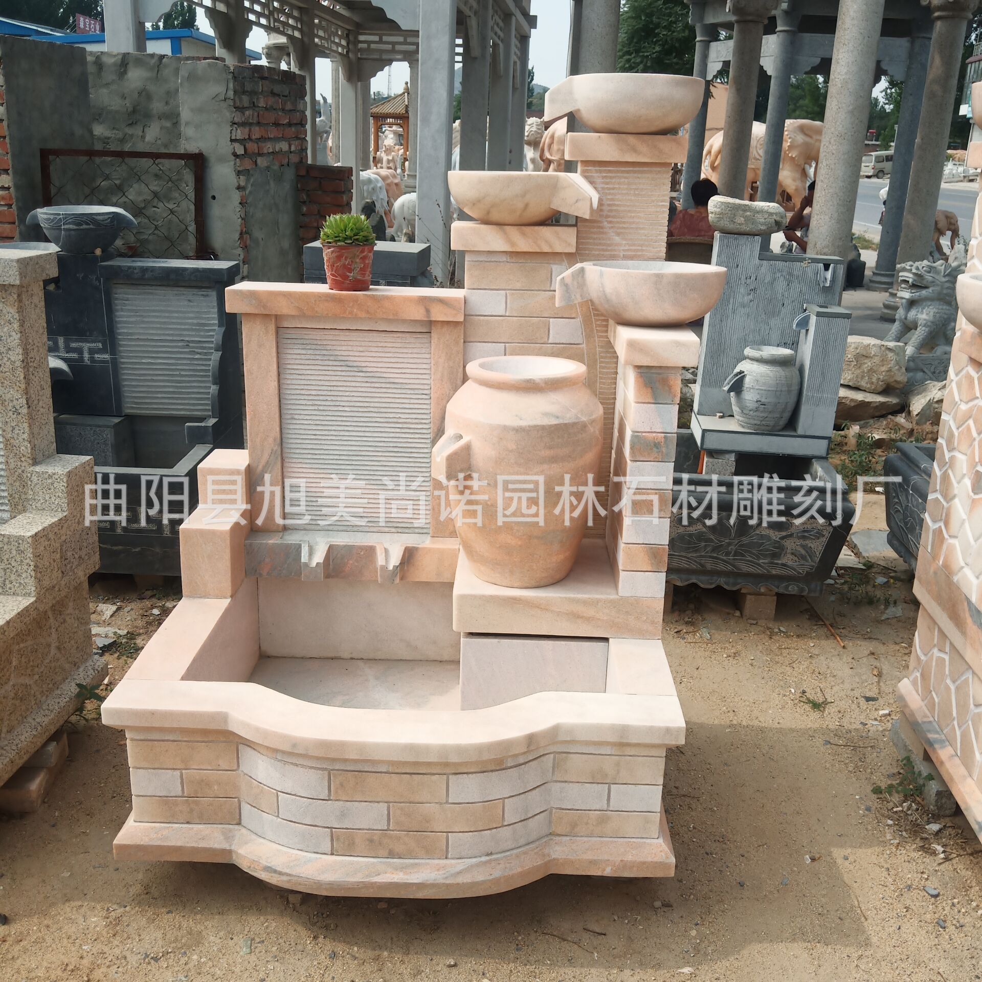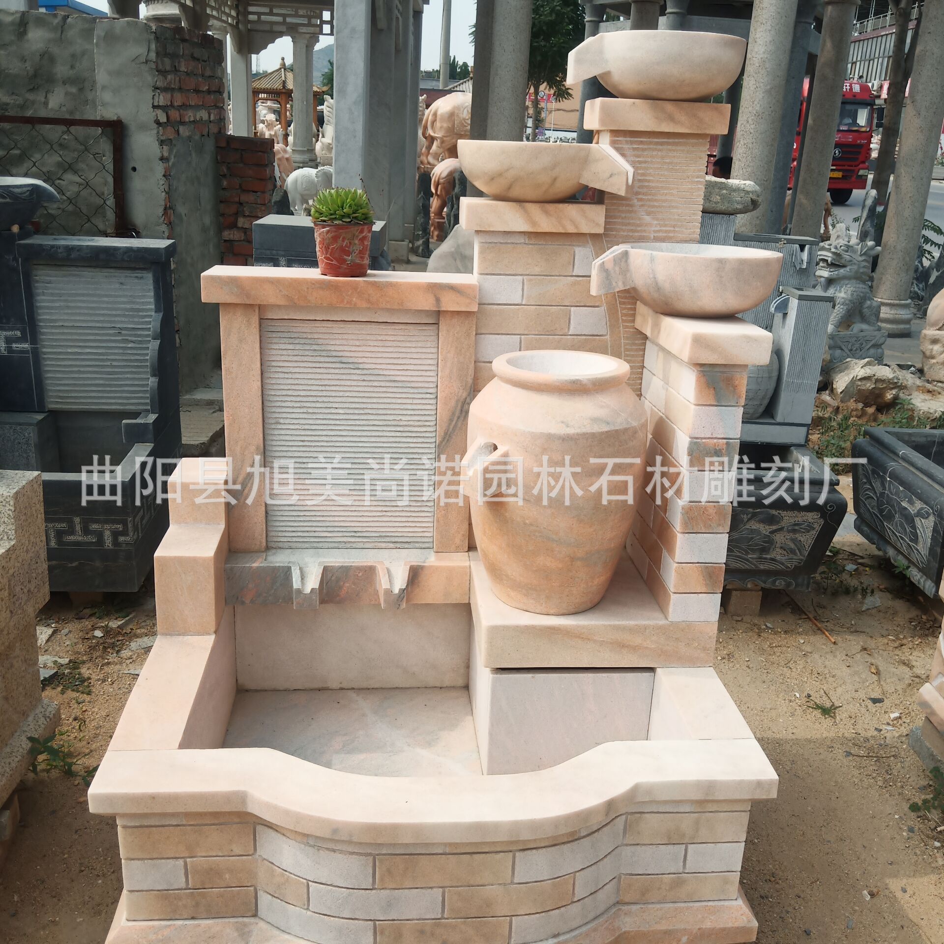 정원 실내 분수 물 장식품 돌 조각 일몰 붉은 물 장식품 그림자 벽 조각스토어 가기