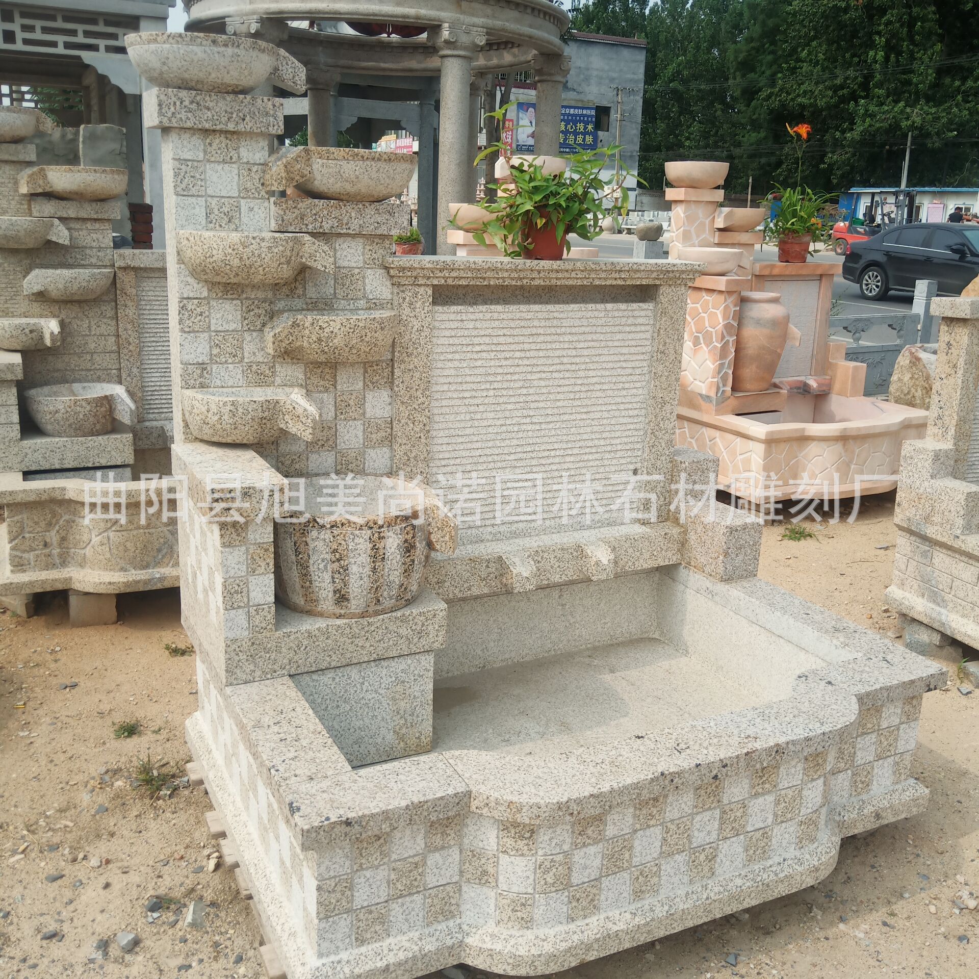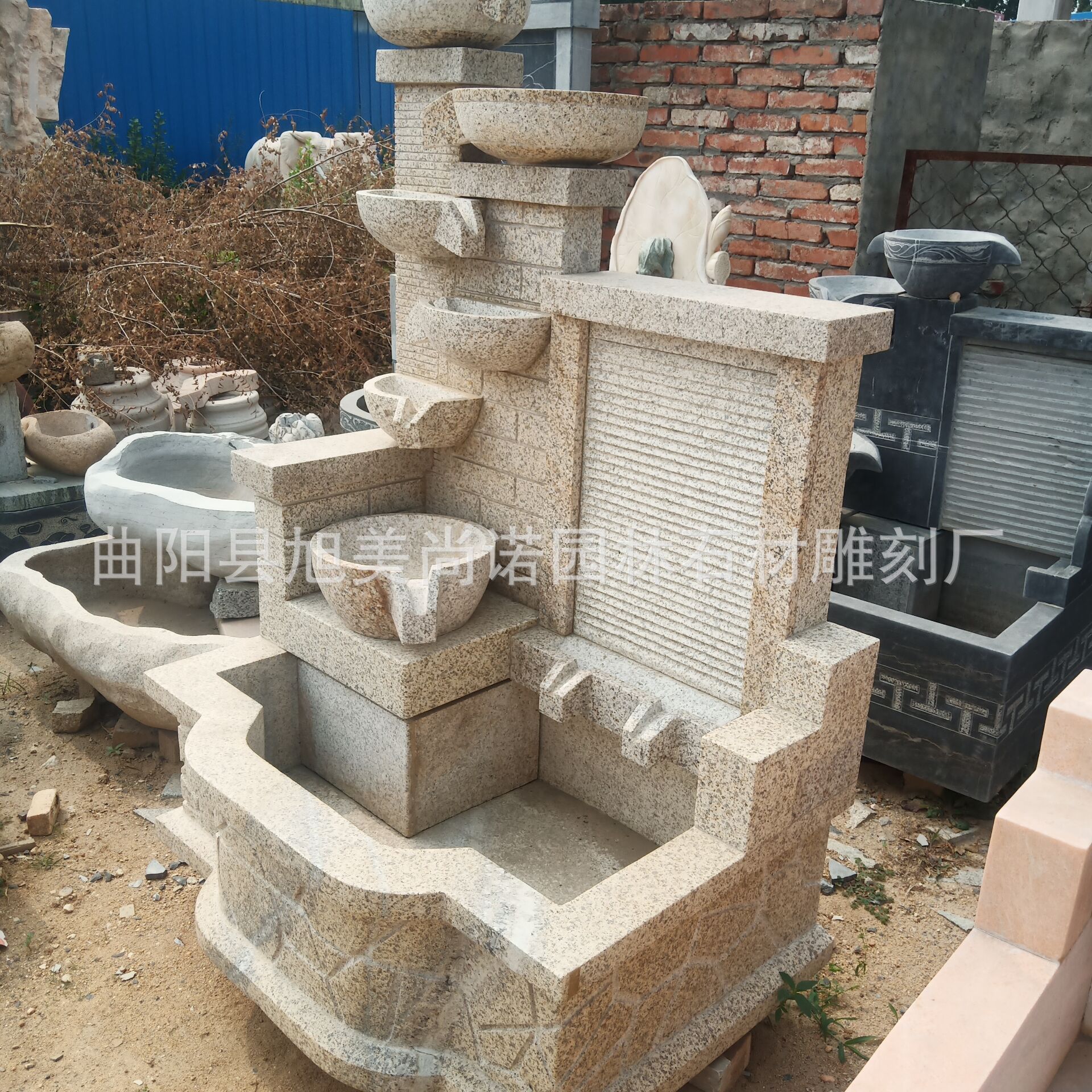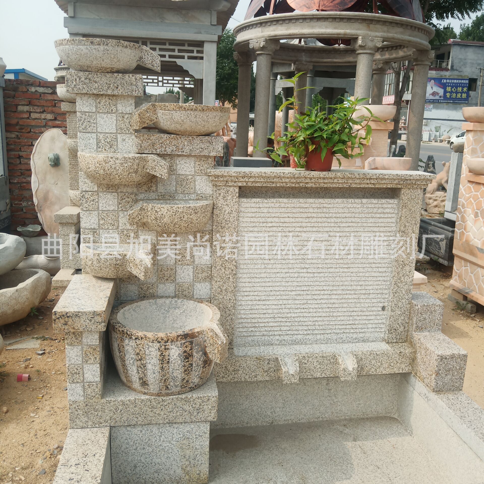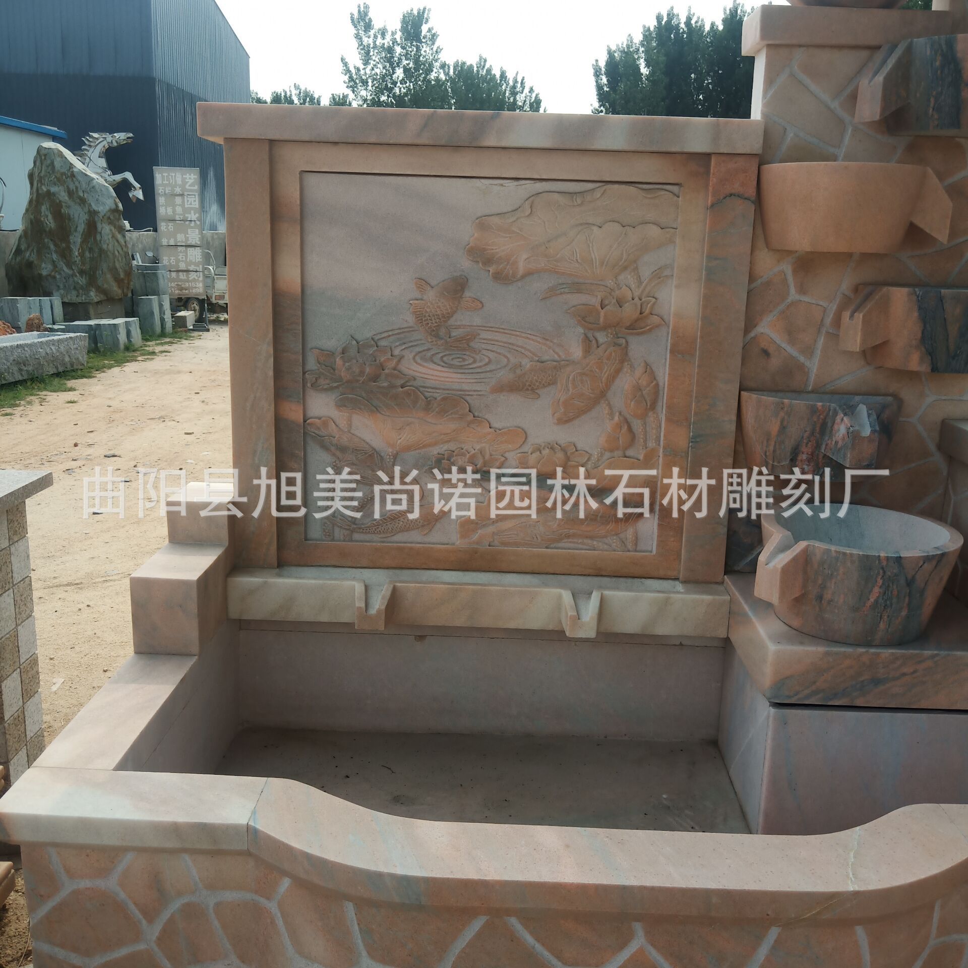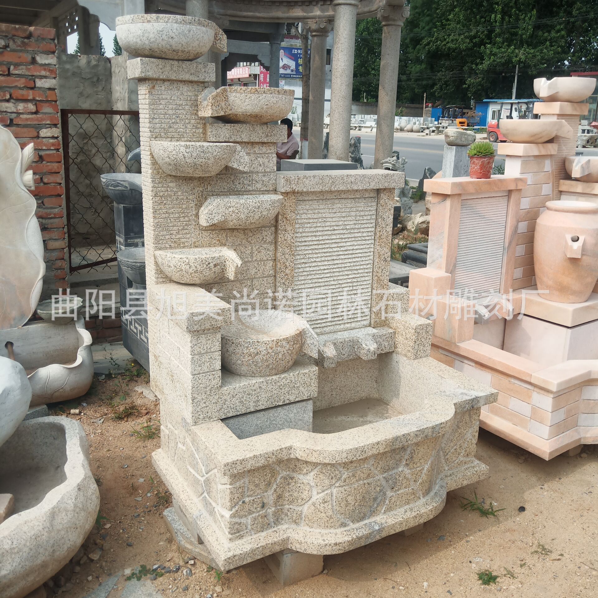 정원 실내 분수 물 장식품 돌 조각 일몰 붉은 물 장식품 그림자 벽 조각스토어 가기