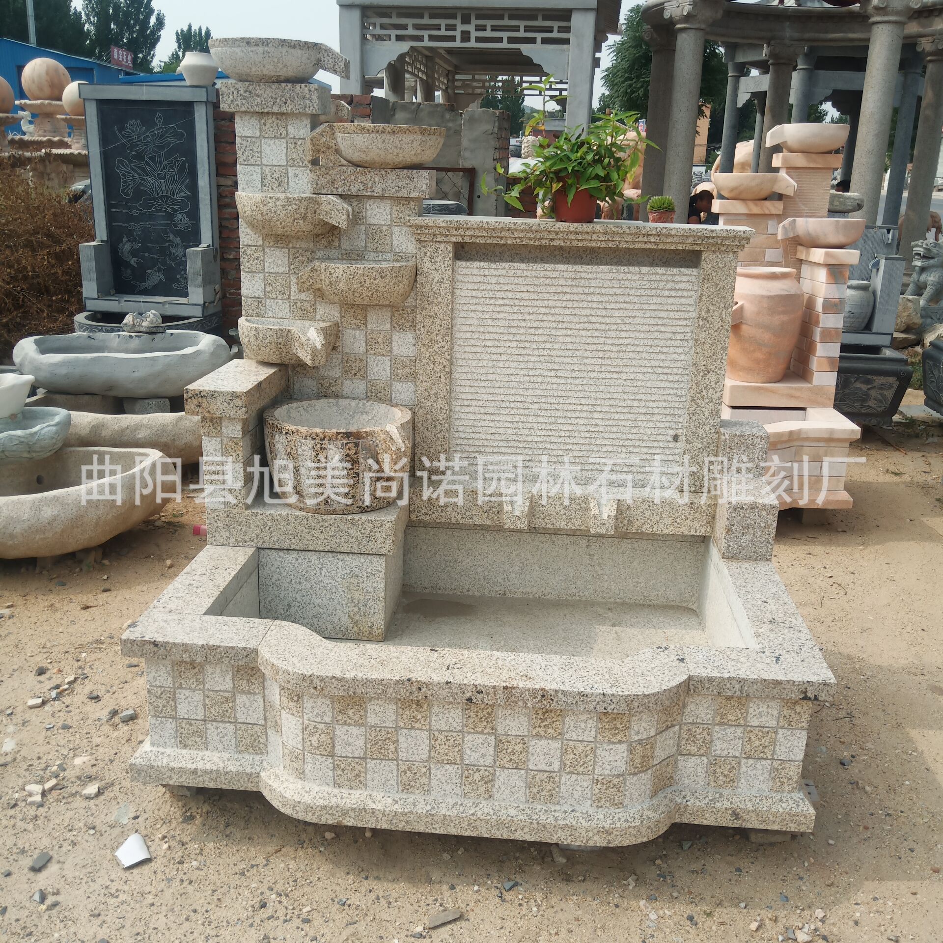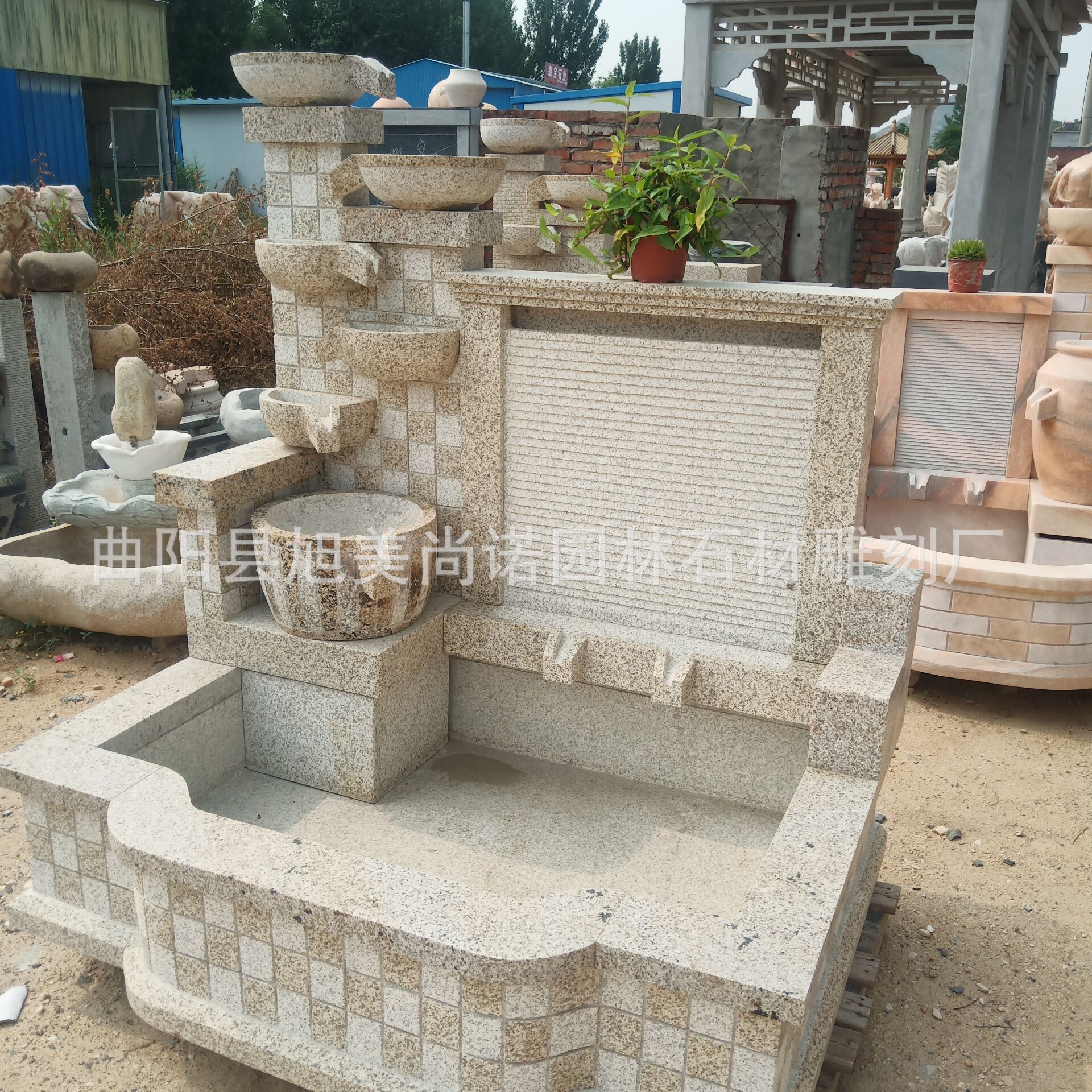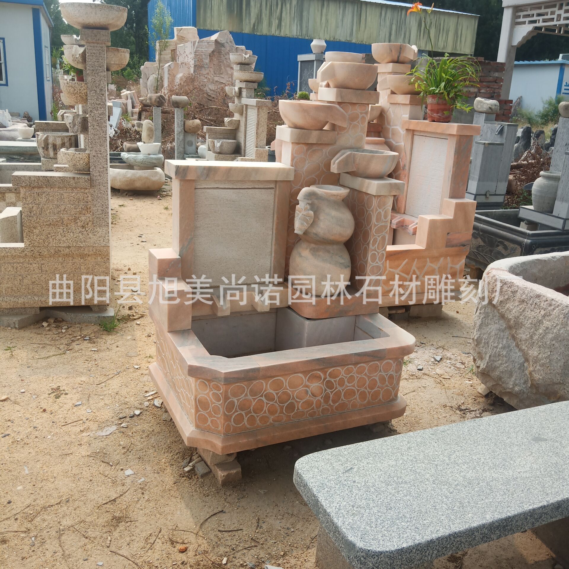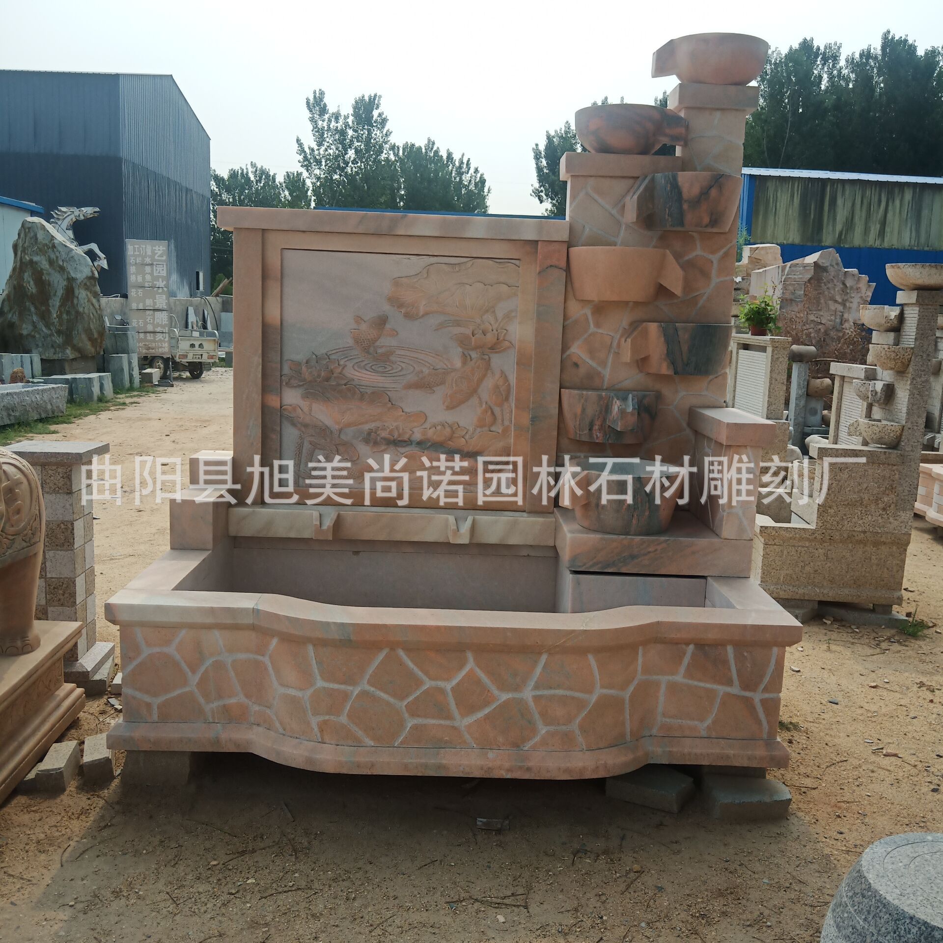 정원 실내 분수 물 장식품 돌 조각 일몰 붉은 물 장식품 그림자 벽 조각스토어 가기
