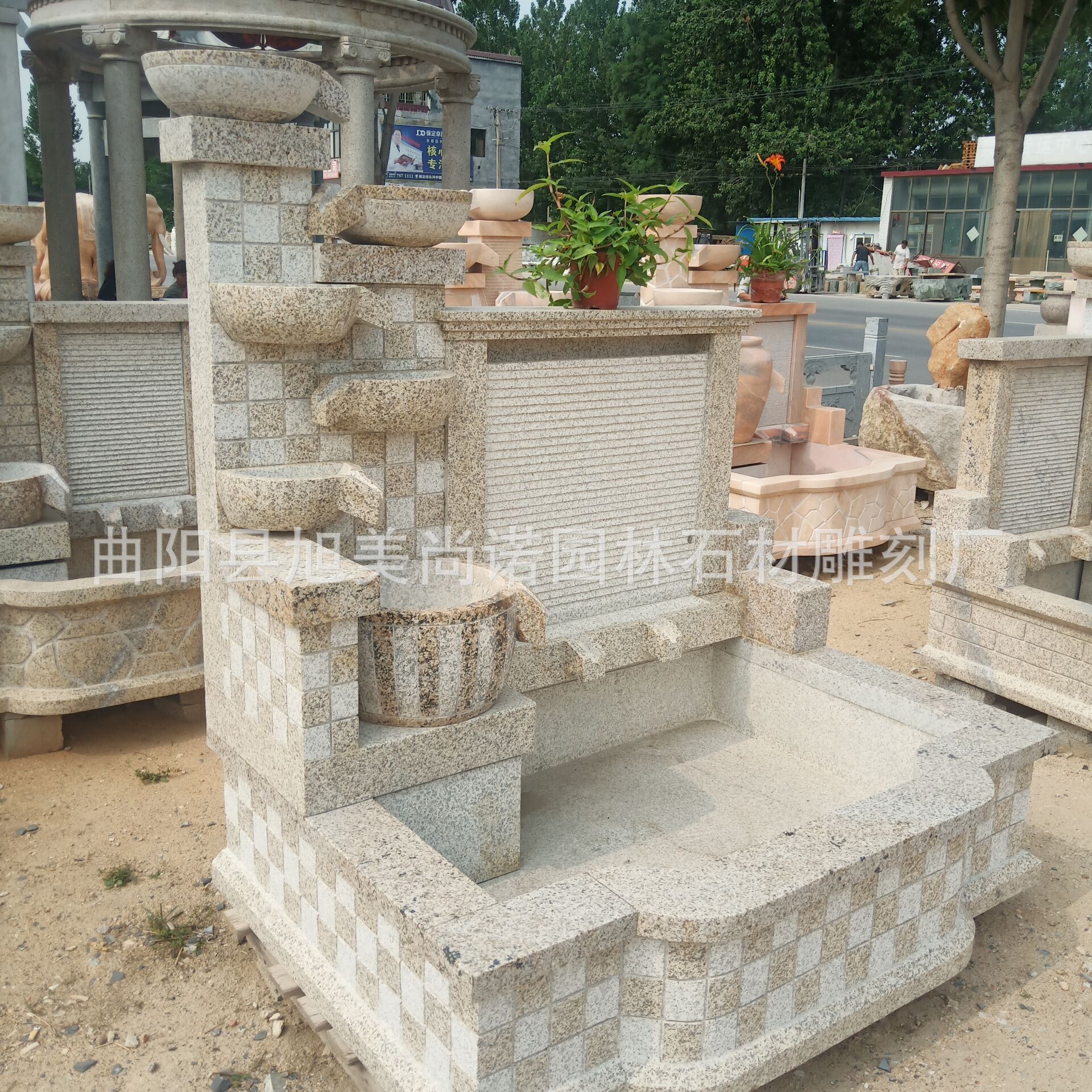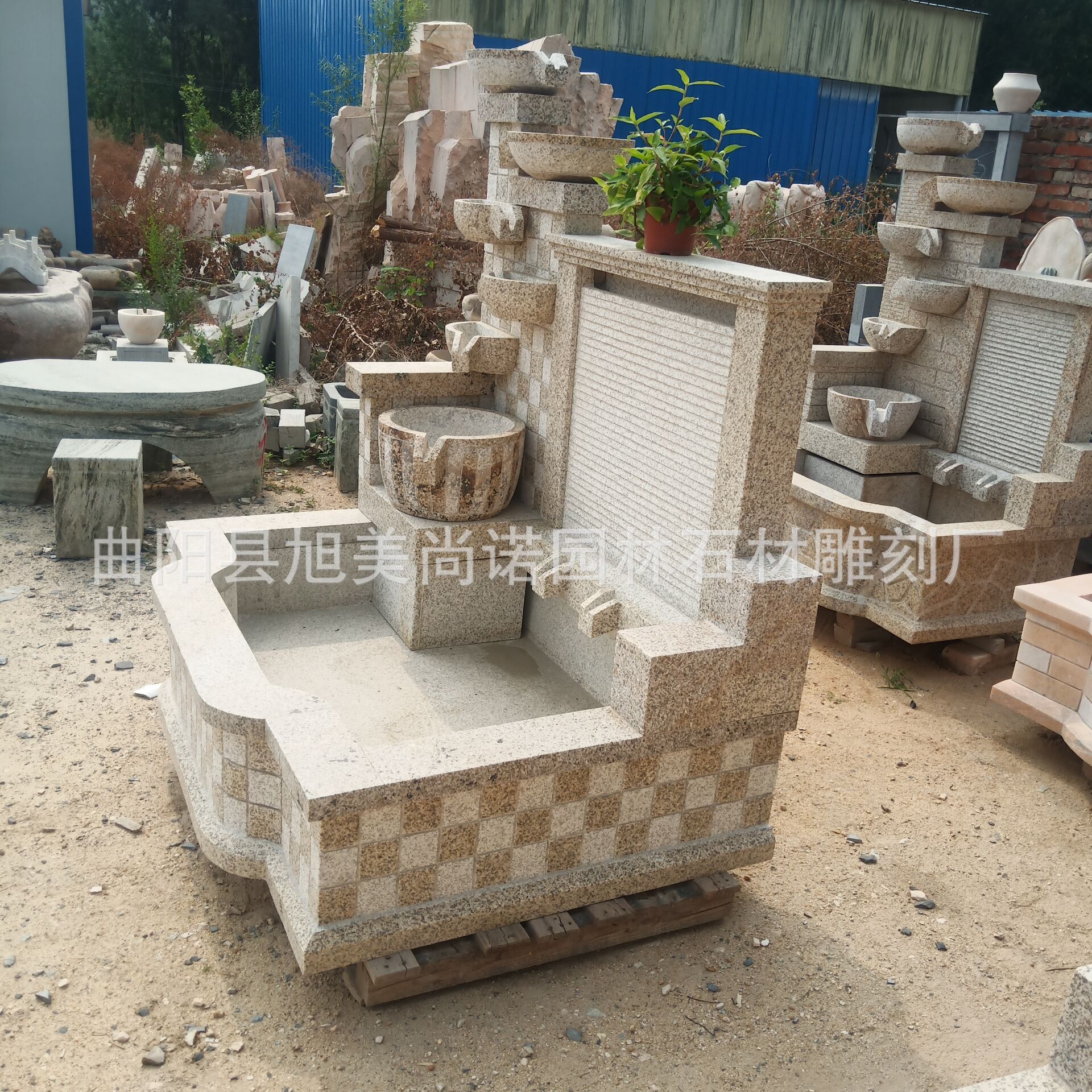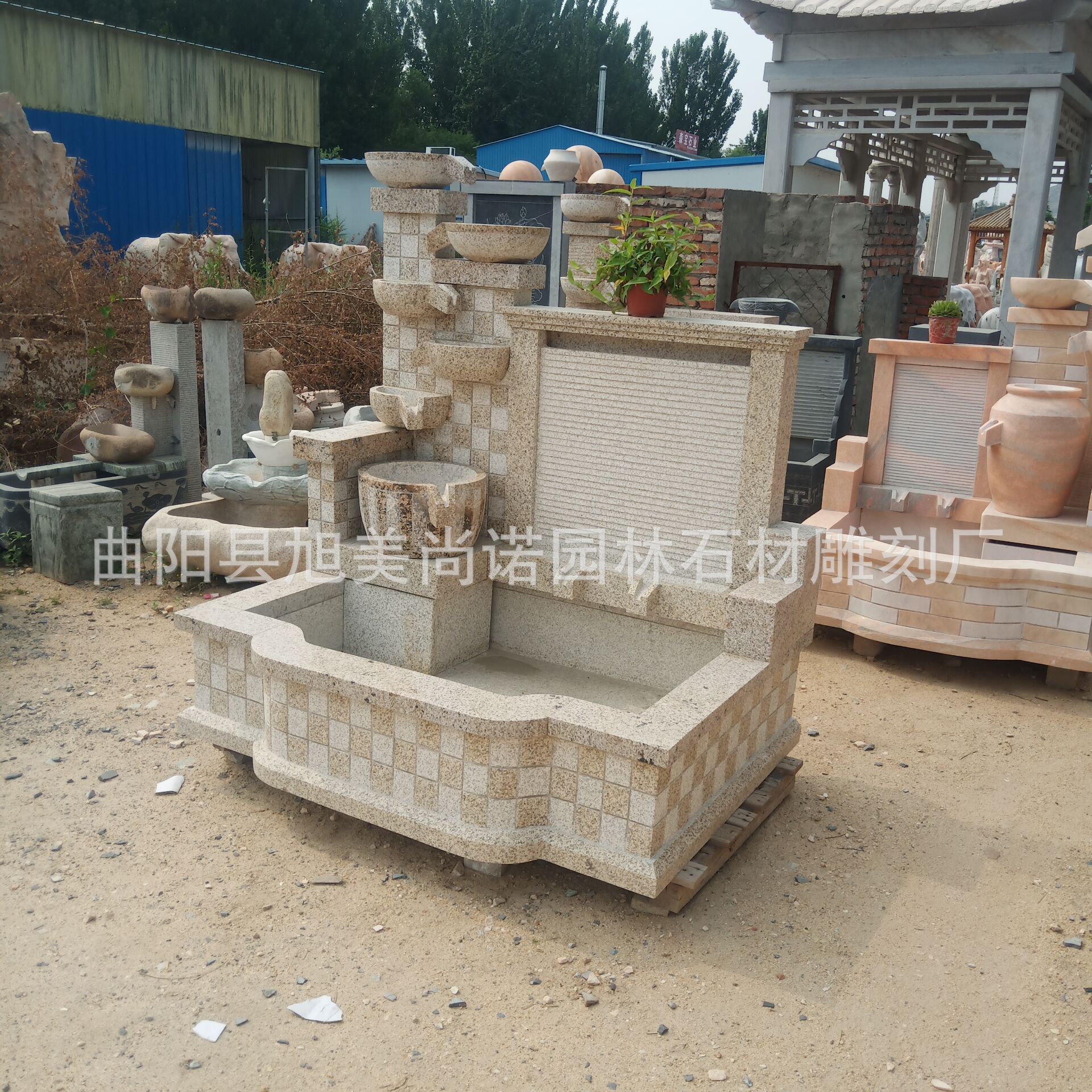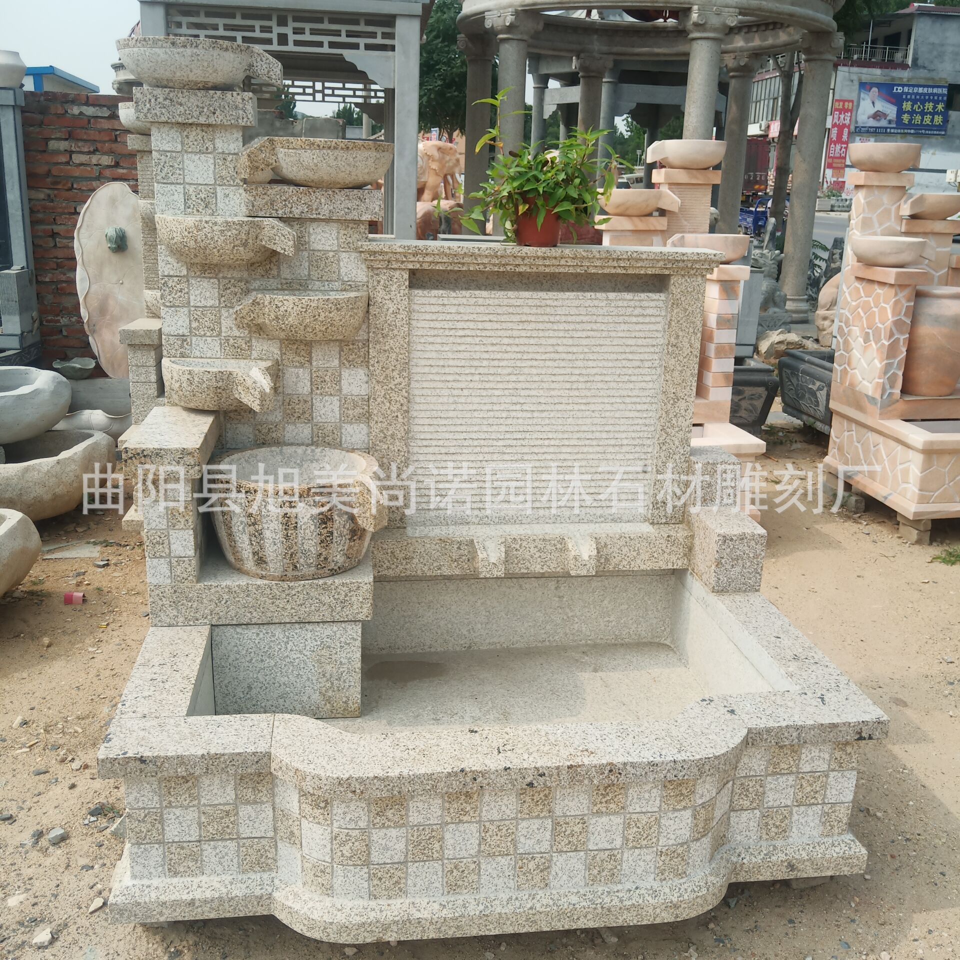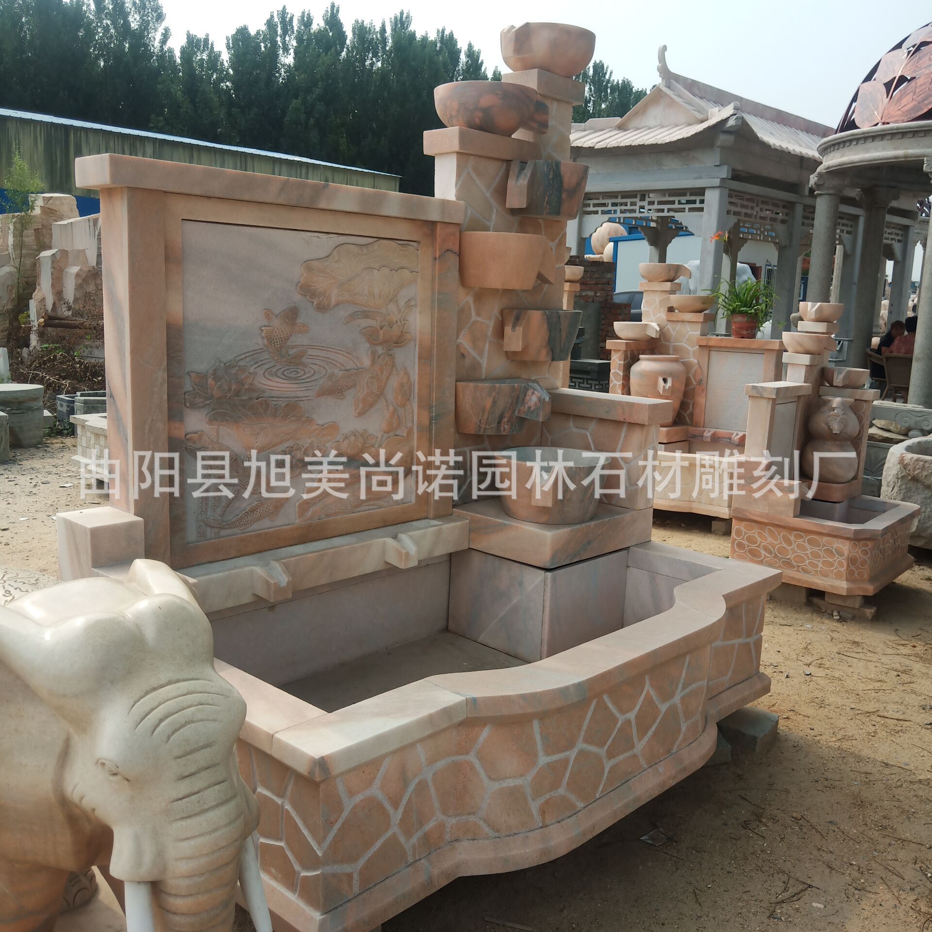 정원 실내 분수 물 장식품 돌 조각 일몰 붉은 물 장식품 그림자 벽 조각스토어 가기