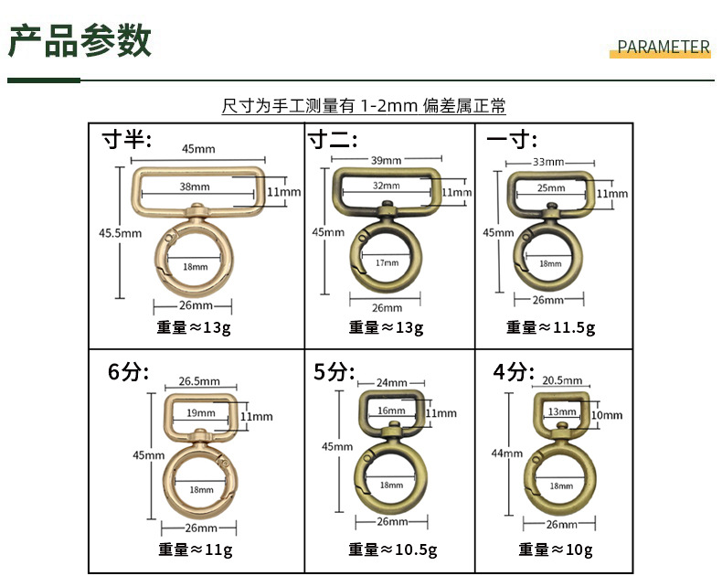 스퀘어 테일 오프닝 스프링 버클 라운드 교수형 버클 수하물 하드웨어 액세서리 가방 연결 버클 백스토어 가기