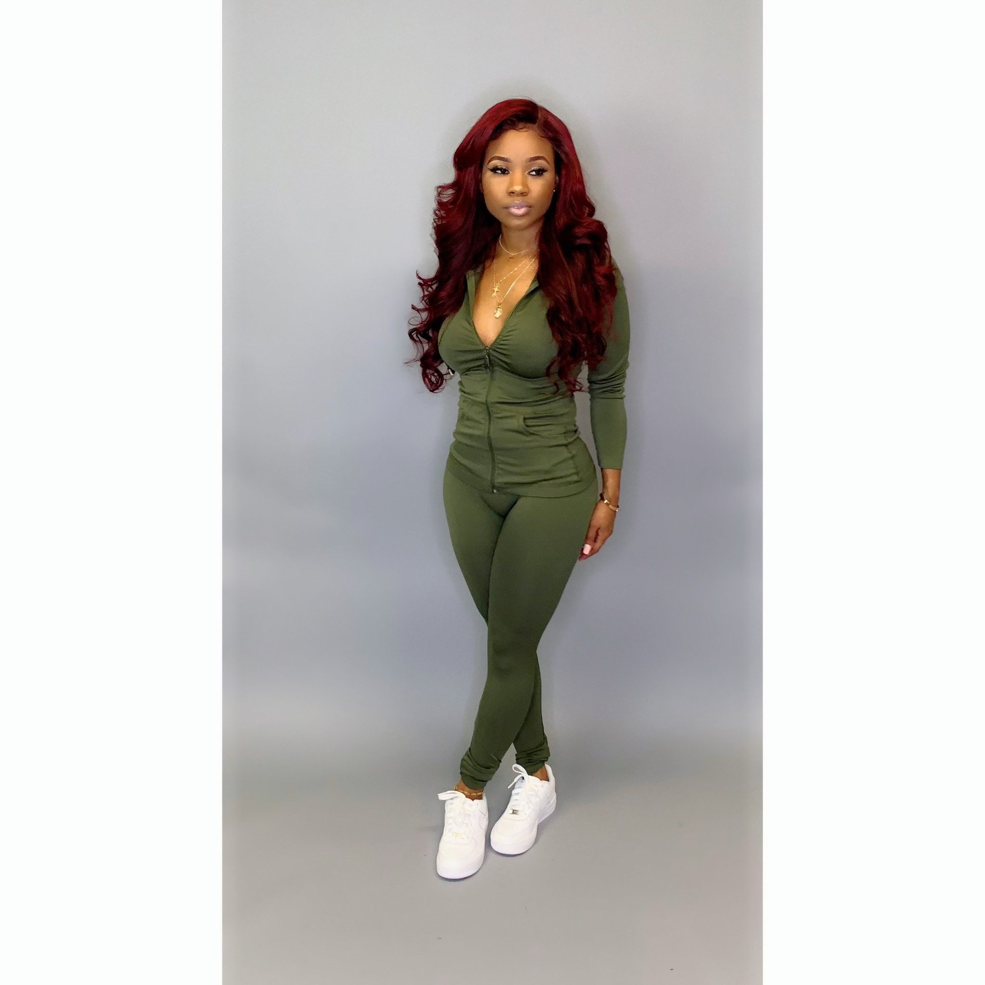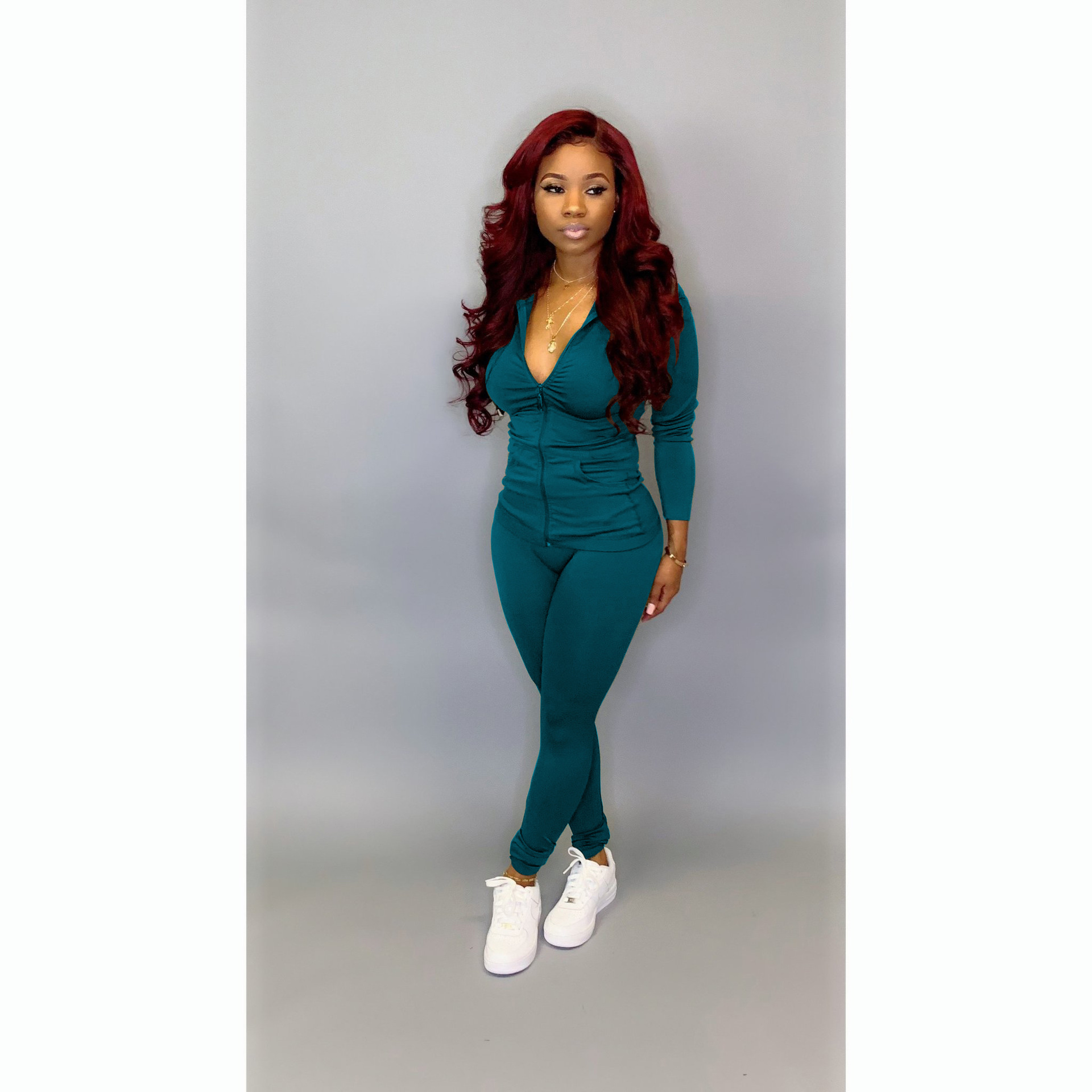 YZ1113 유럽과 미국 크로스 보더 여성 의류 아마존 가을 패션 캐주얼 스포츠 모자와 포켓 지퍼가있는 투피스 세트