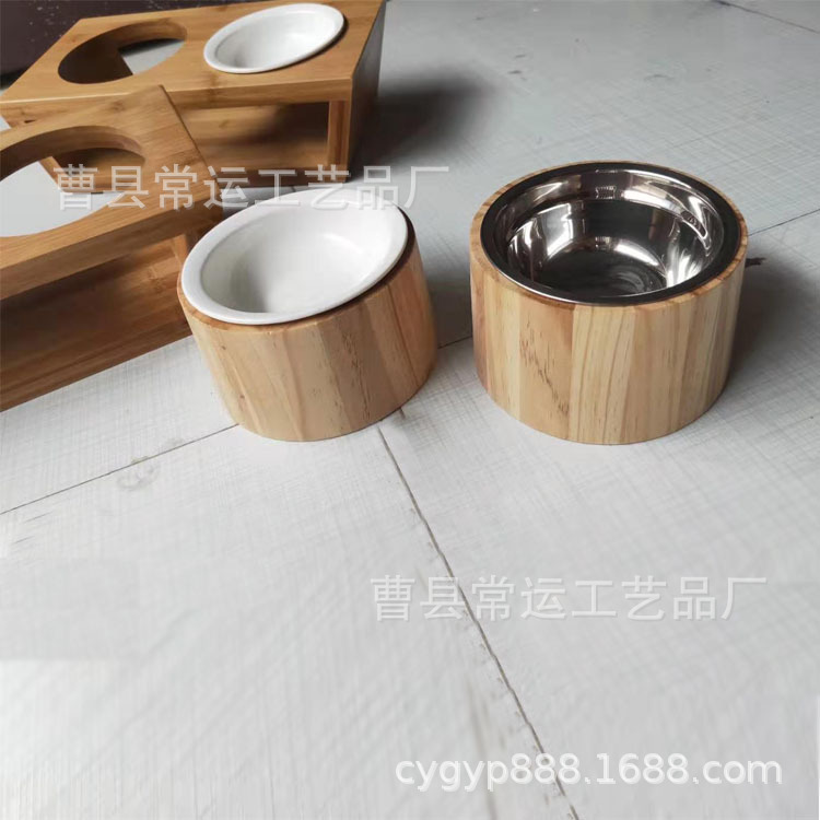 나무 애완 동물 단단한 나무 두 배 그릇 고양이 목 보호 세라믹 단일 그릇 개 그릇 고양이 그릇 음식 냄비 가정용 간단한 용품