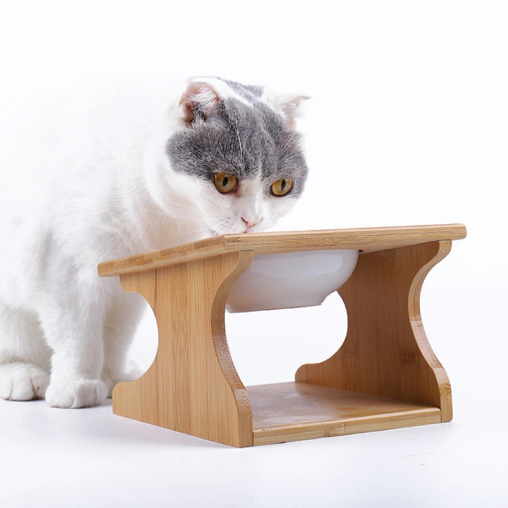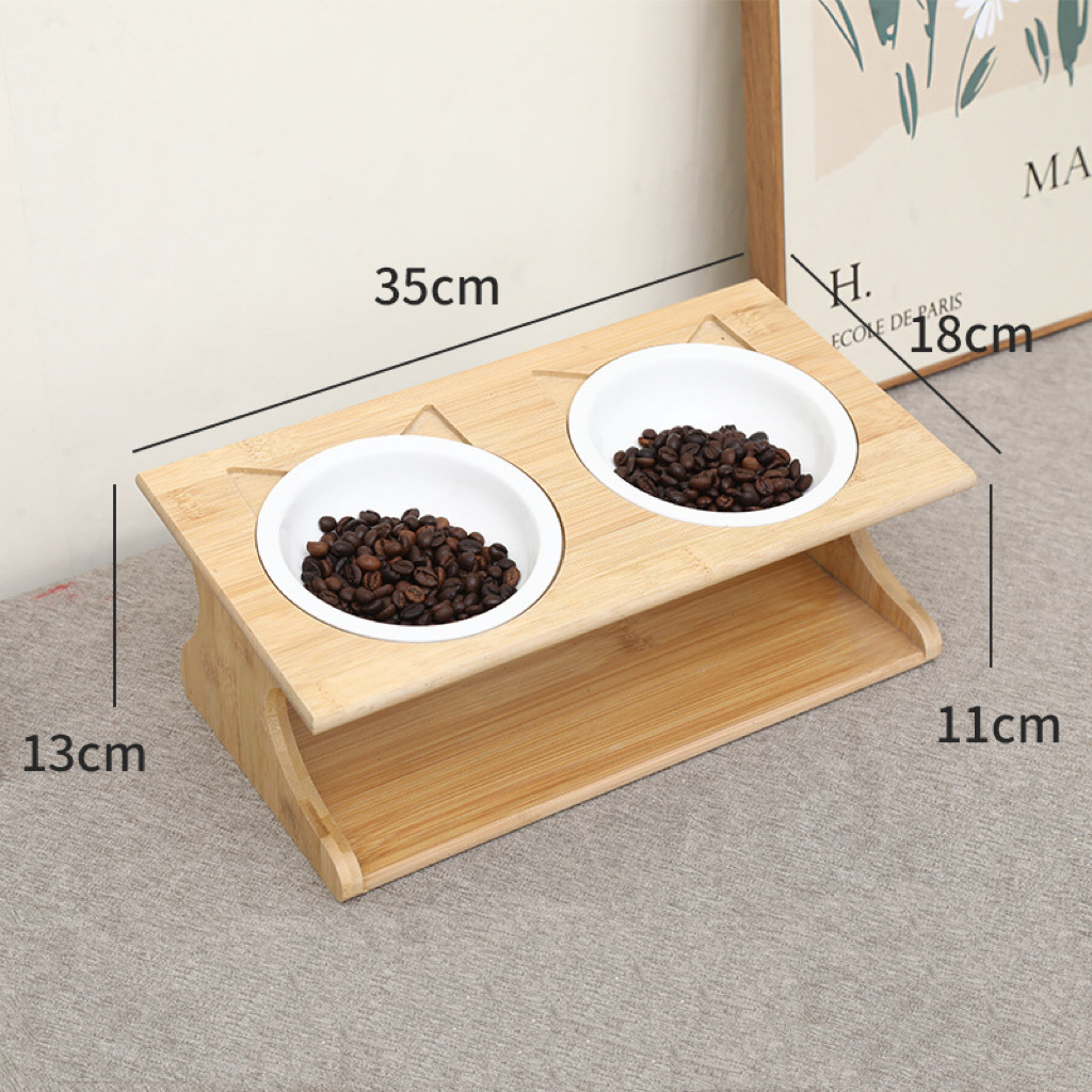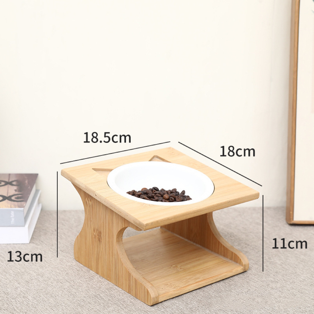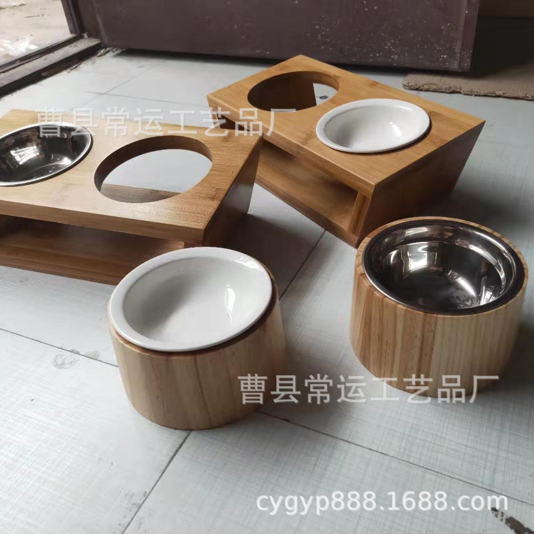 나무 애완 동물 단단한 나무 두 배 그릇 고양이 목 보호 세라믹 단일 그릇 개 그릇 고양이 그릇 음식 냄비 가정용 간단한 용품스토어 가기
