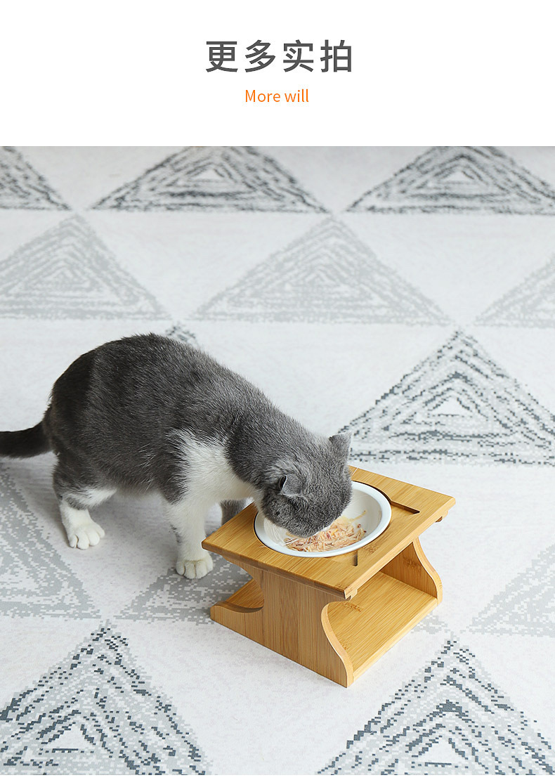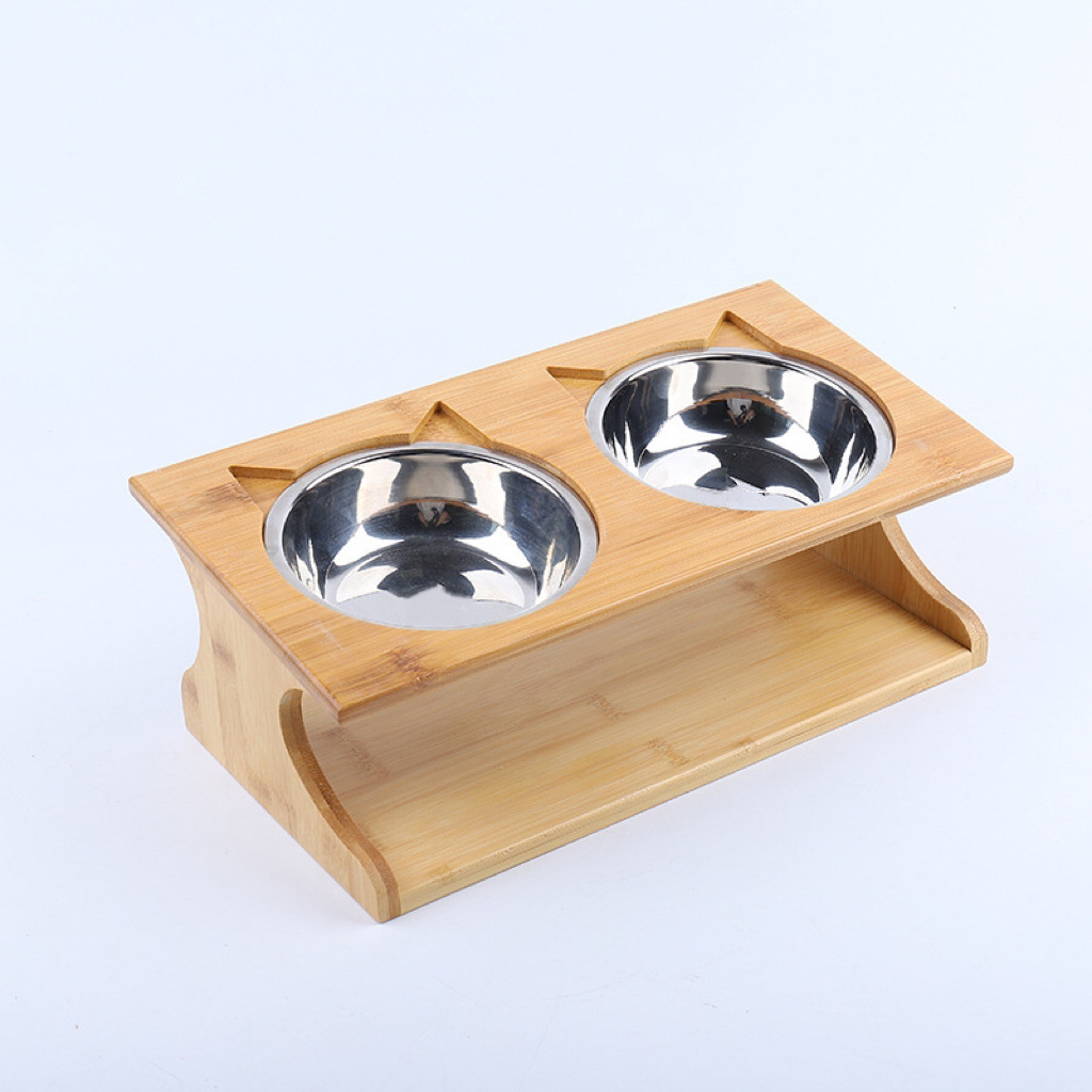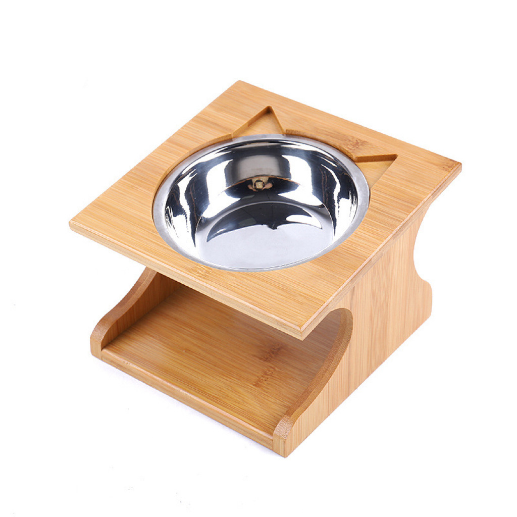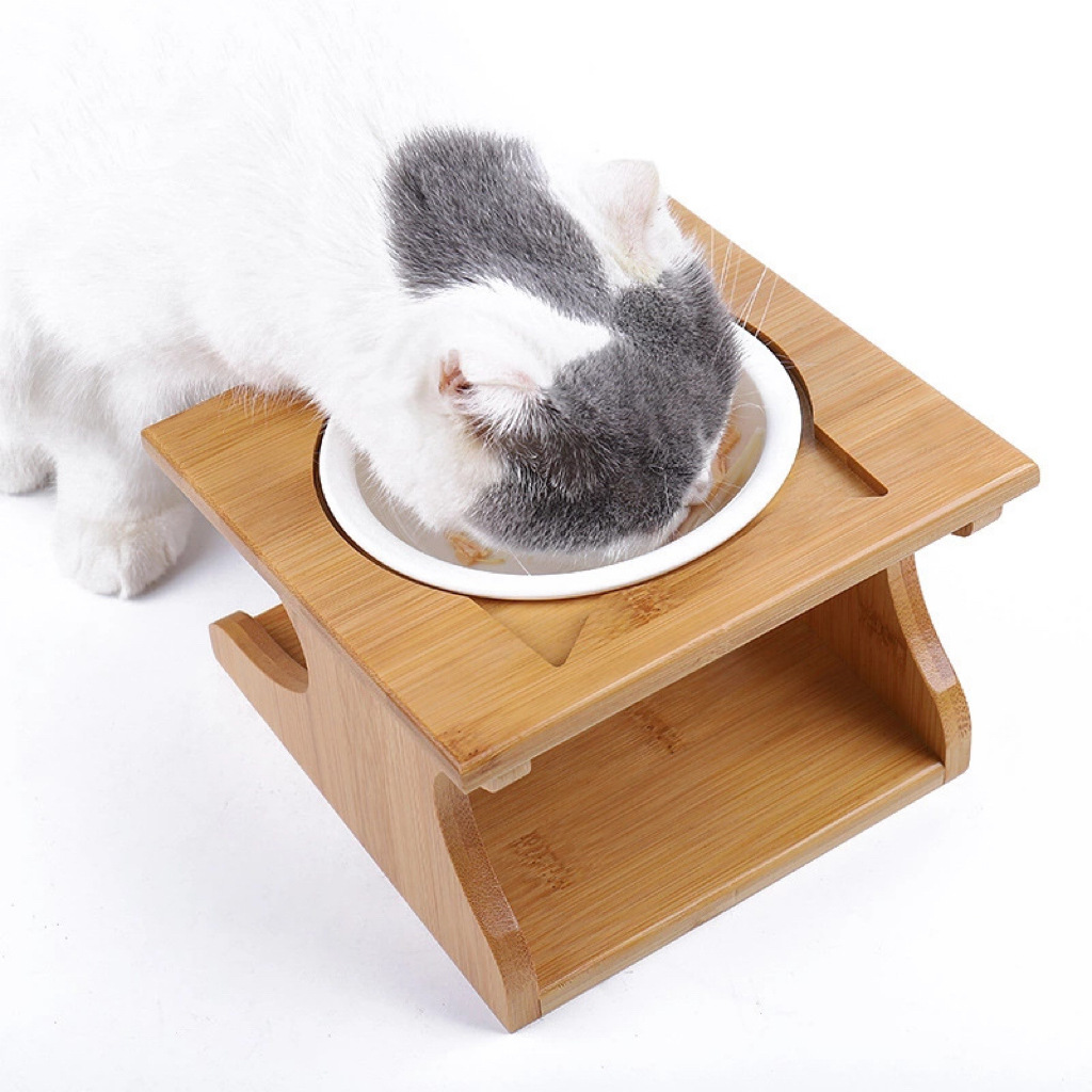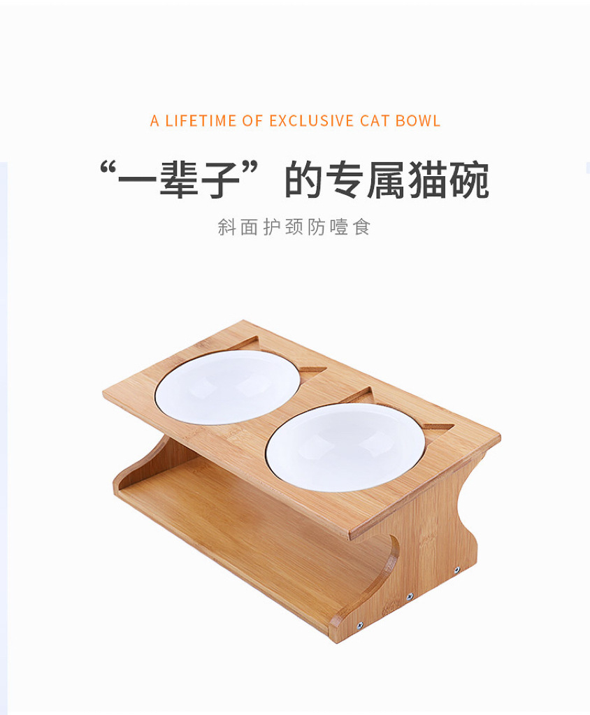 나무 애완 동물 단단한 나무 두 배 그릇 고양이 목 보호 세라믹 단일 그릇 개 그릇 고양이 그릇 음식 냄비 가정용 간단한 용품스토어 가기