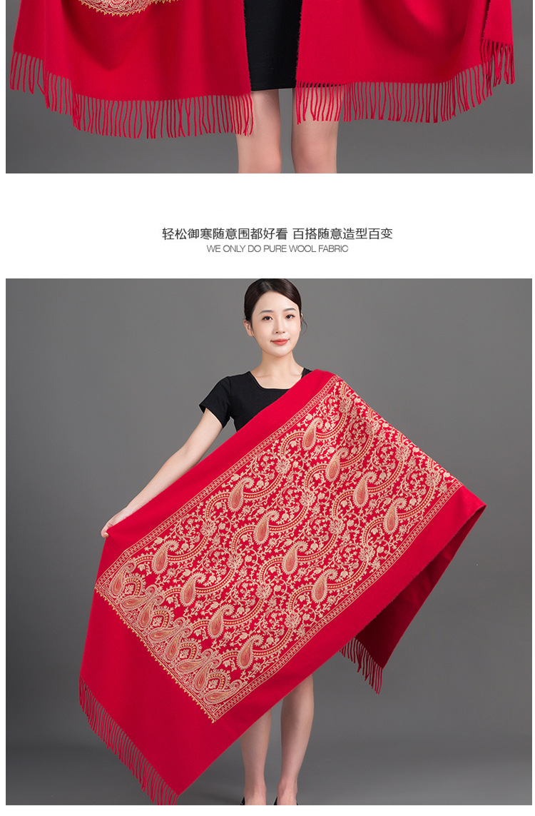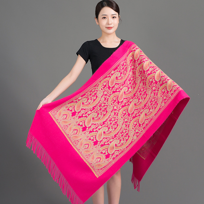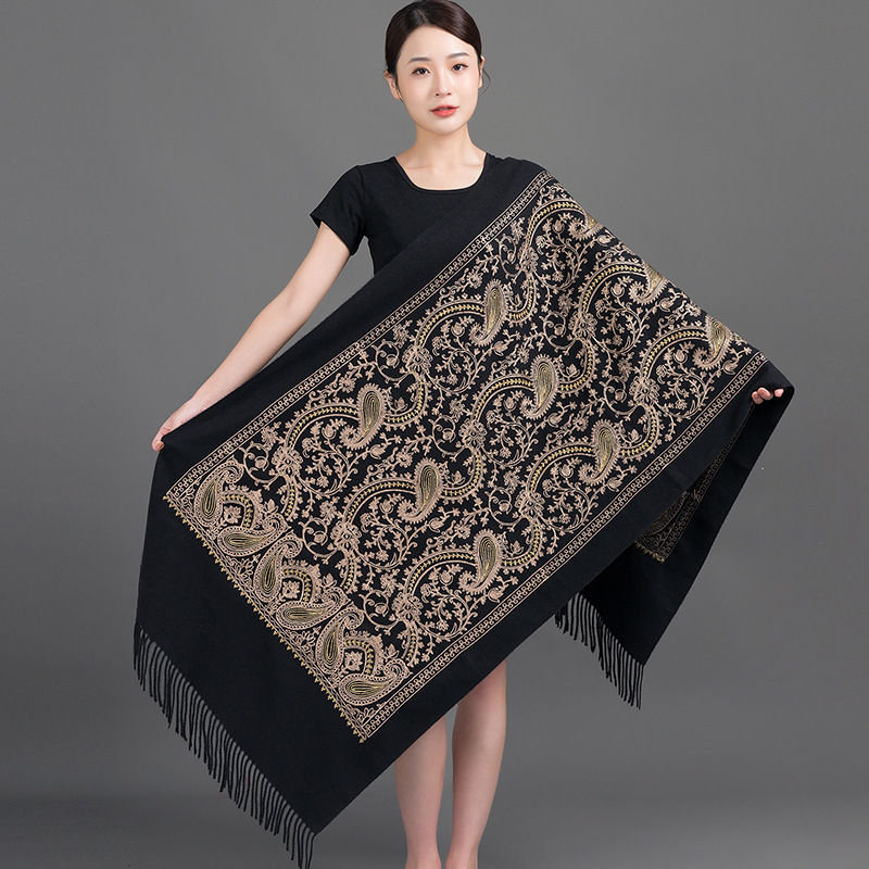 수제 자수 스카프 여성용 겨울 에스닉 스타일 두꺼운 양면 따뜻한 숄 이중 목적 모든 매치 가을과 겨울 긴