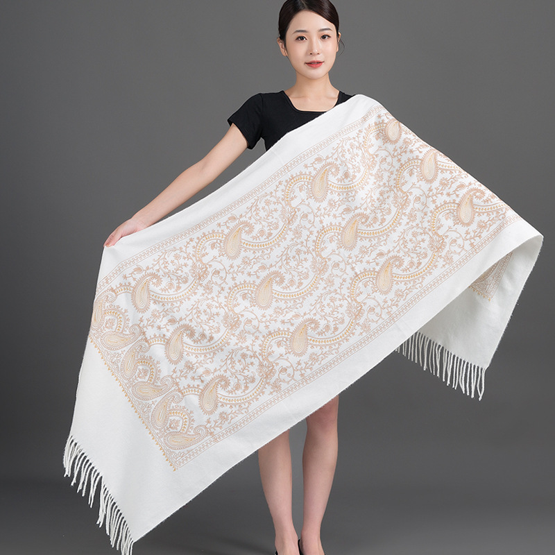수제 자수 스카프 여성용 겨울 에스닉 스타일 두꺼운 양면 따뜻한 숄 이중 목적 모든 매치 가을과 겨울 긴스토어 가기