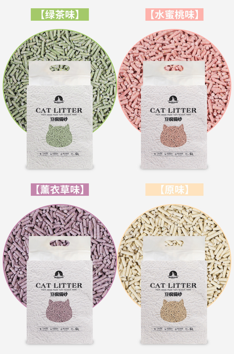 두부 고양이 쓰레기 먼지 탈취 쉬운 응집 우유 향기로운 두부 쓰레기 생분해 식물 고양이 쓰레기 애완 동물 용품 도매스토어 가기