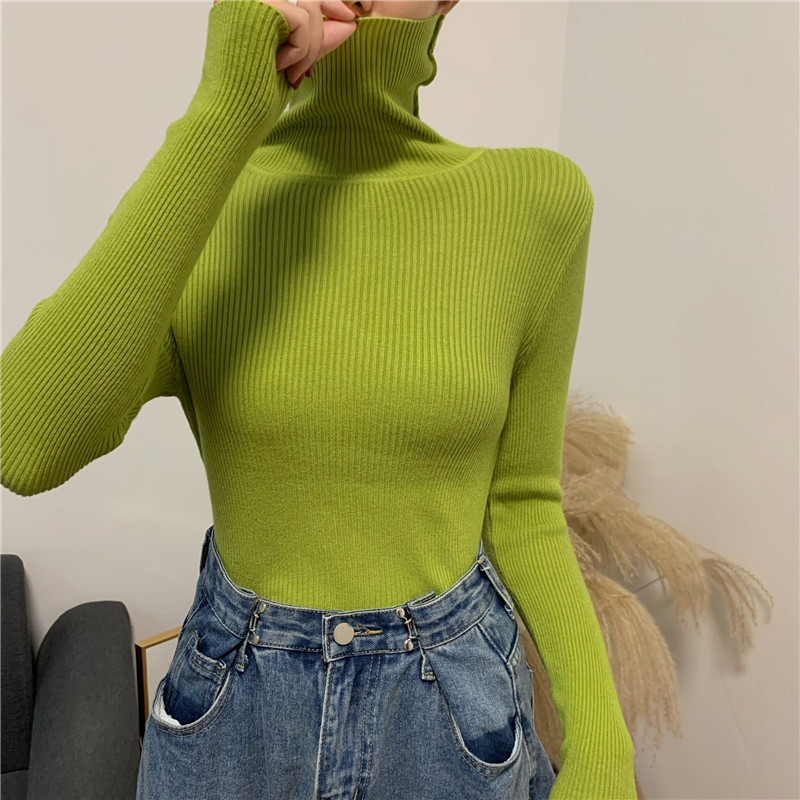 2024 가을 신상 한국 스타일 다용도 단색 슬림핏 터틀넥 따뜻한 긴팔 니트 스웨터 여성복