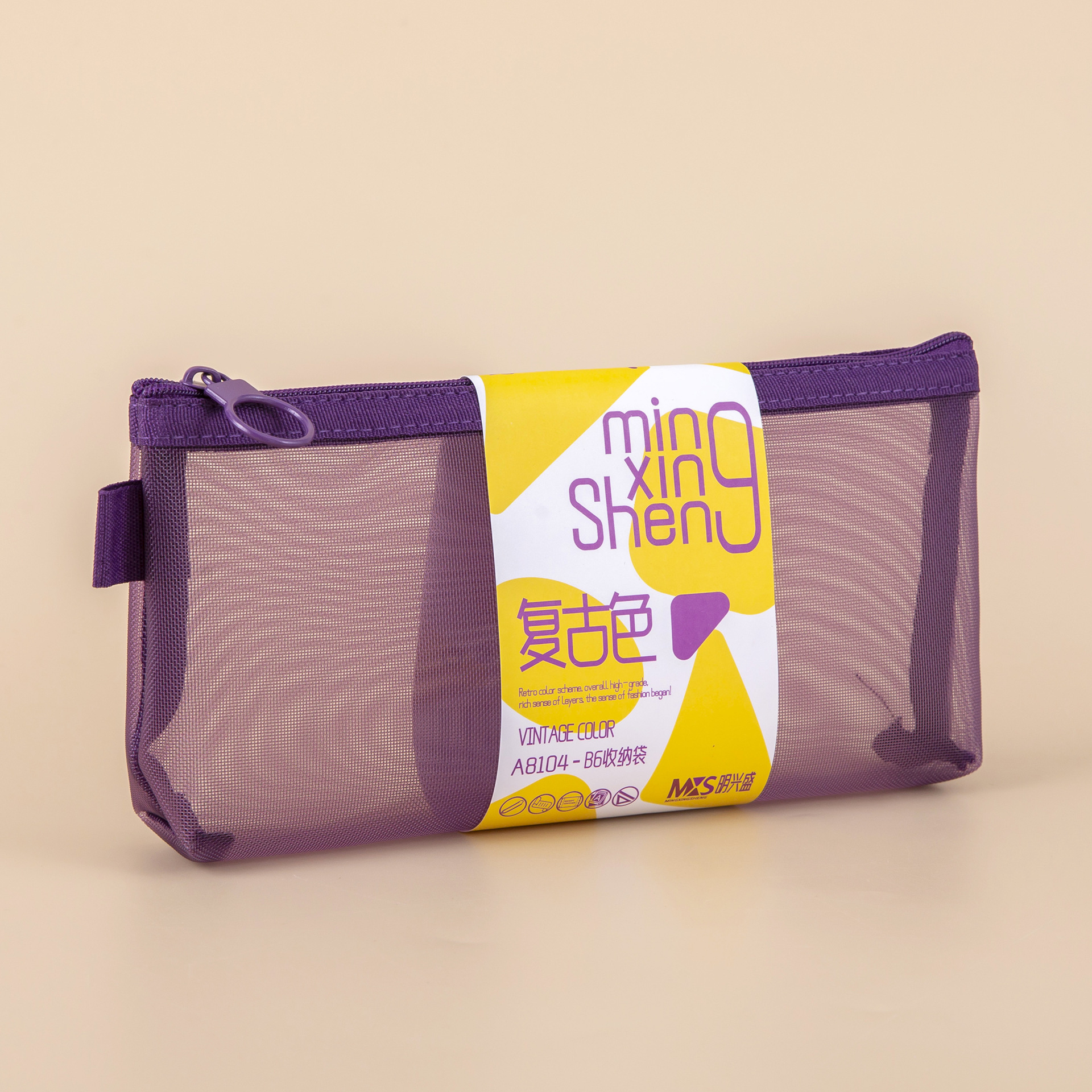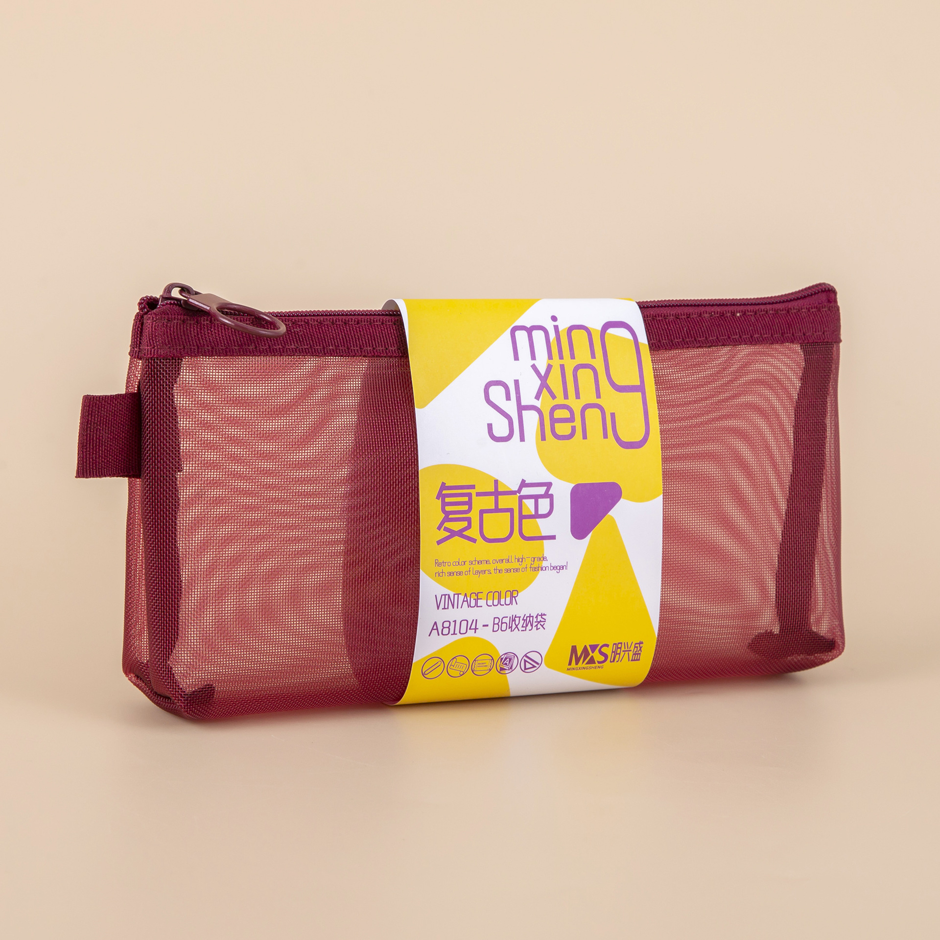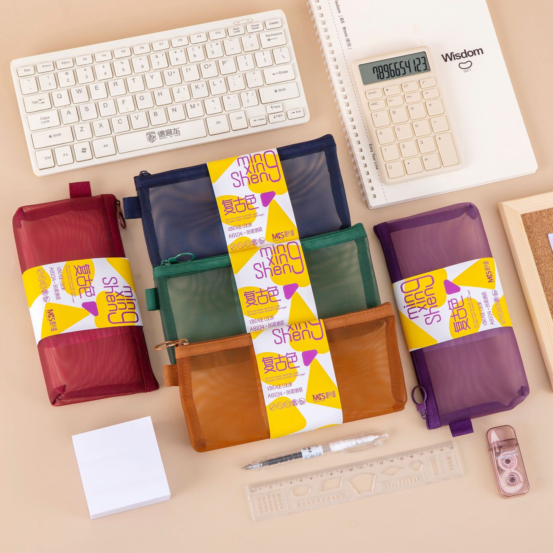 재고 도매 간단한 저장 펜 가방 대용량 3 차원 나일론 투명 단색 메쉬 연필 문구 가방