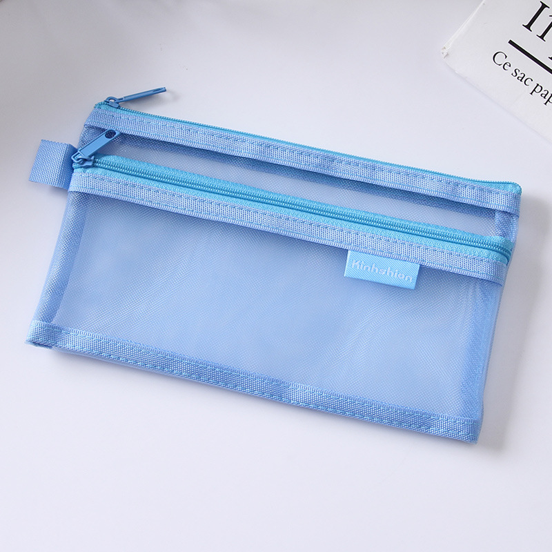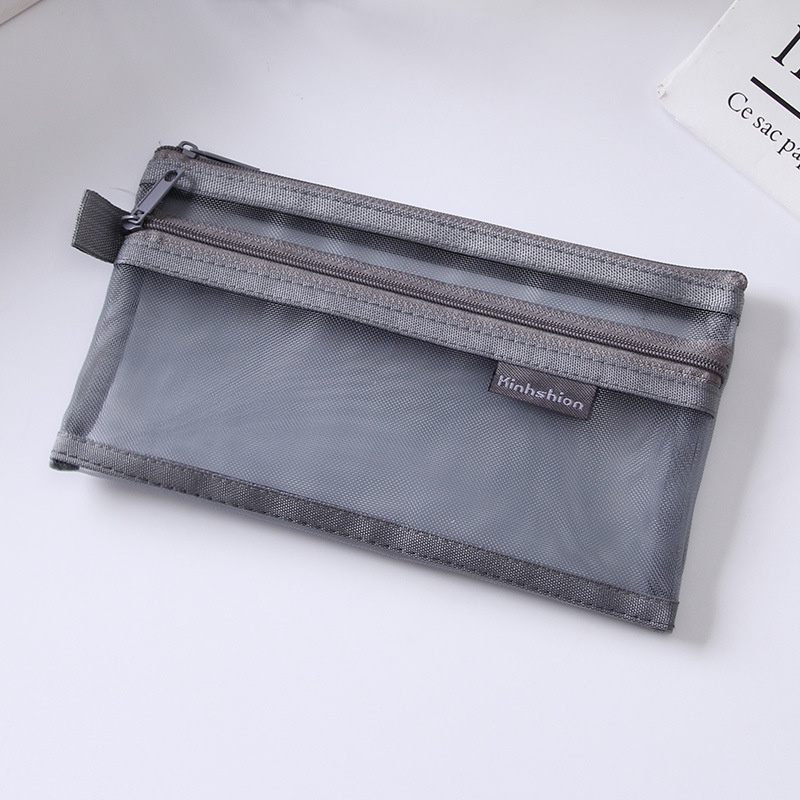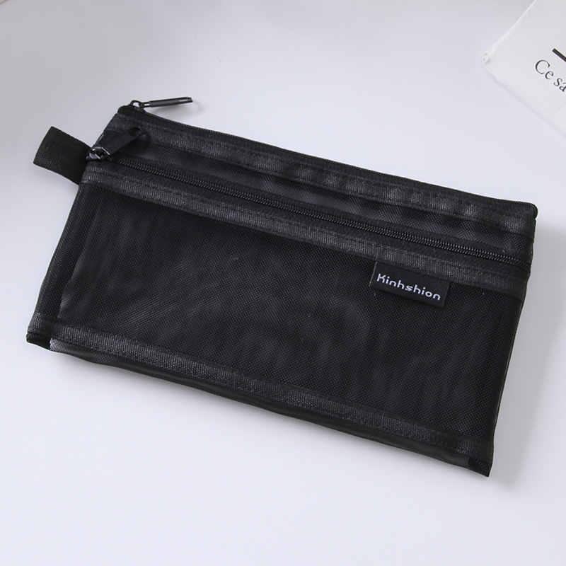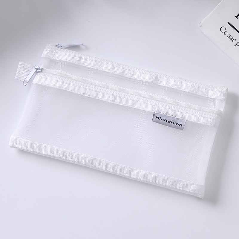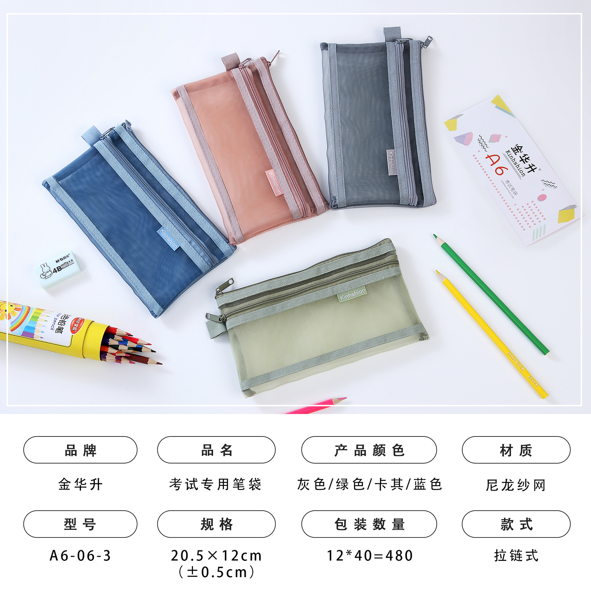 Jinhuasheng 심플 투명 메쉬 보관 가방 2 층 문구 가방 학생 시험용 특수 대용량 연필 가방