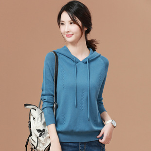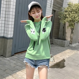小香风2019秋连帽外穿打底衫韩版修身显瘦字母印花长袖针织衫毛衣