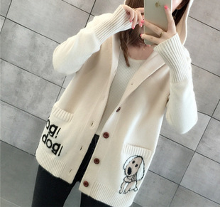 2019秋冬季新款毛衣韩版小狗图案开衫上衣女装百搭针织网红毛衣女