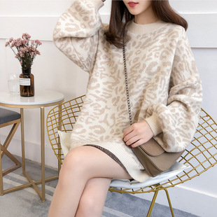 豹纹毛衣女2019新款韩版宽松慵懒风秋冬季女装套头长袖针织衫上衣
