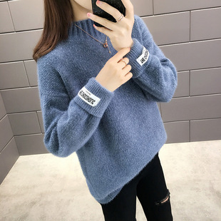 2019秋冬新款韩版半高领针织毛衣女长袖宽松套头衫百搭显瘦打底衫