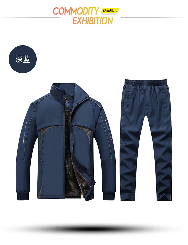 새로운 중년 및 노인 겨울 기모 두꺼운 따뜻한 남자의 아빠 폴리에스터 스포츠 세트 재킷 HG57