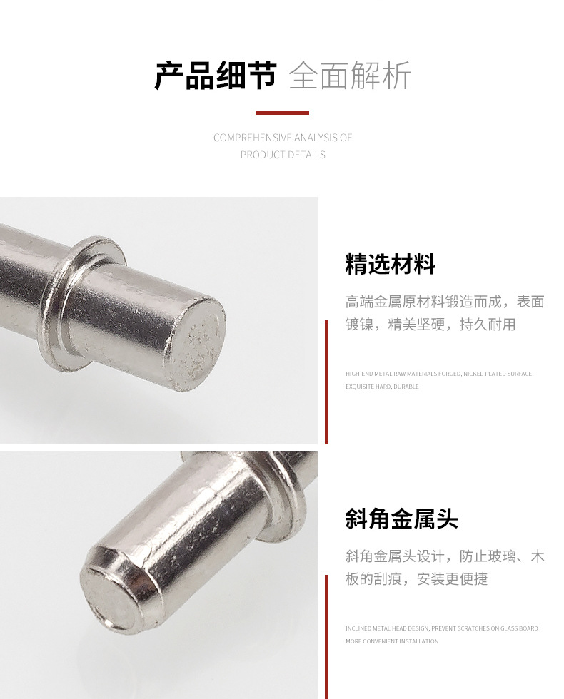 储物柜玻璃中轴层板托 家具展示柜活动层板托 衣柜橱柜玻璃隔板销