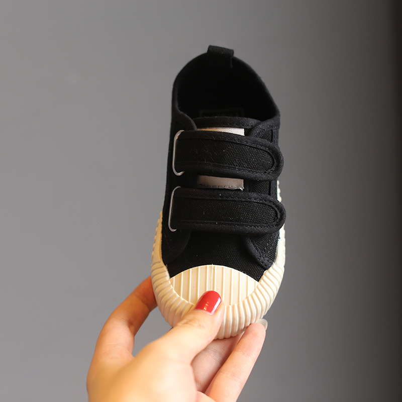 한국 스타일 아동 신발 캔디 컬러 로우탑 아동 캔버스 신발 벨크로 2025 새로운 스타일 소년 소녀 베이비 비스킷 신발스토어 가기