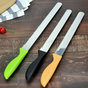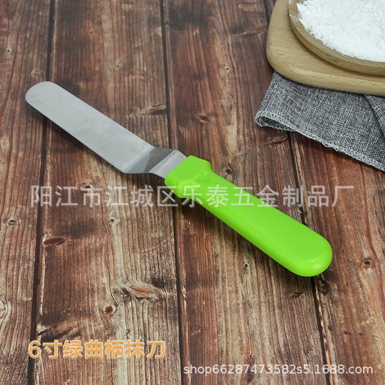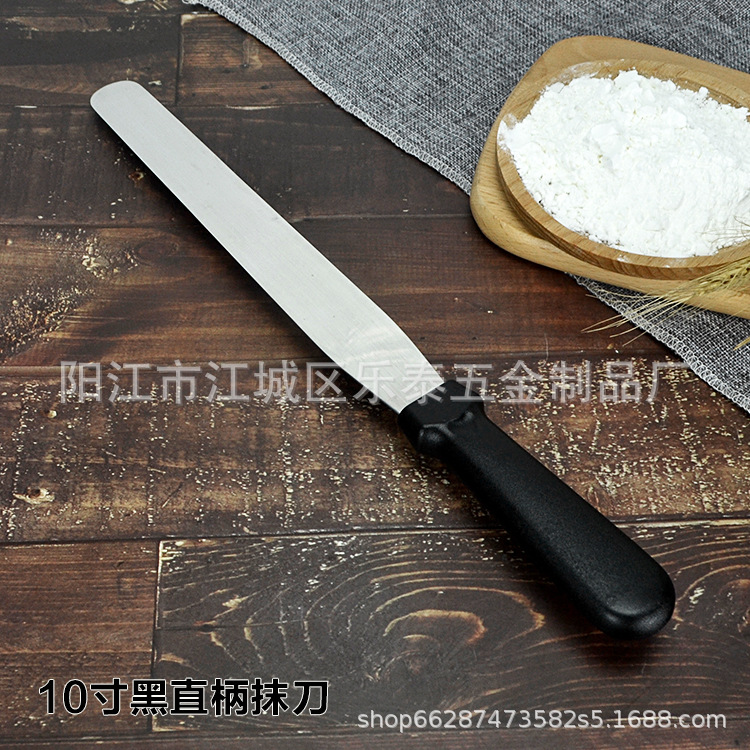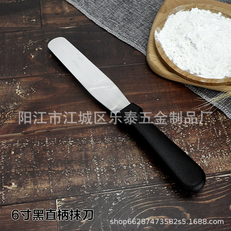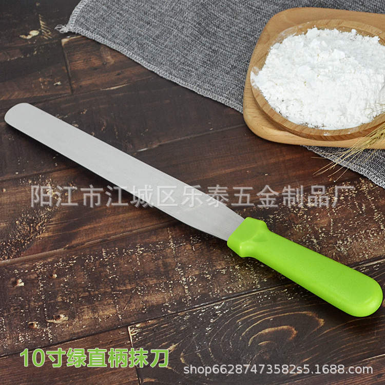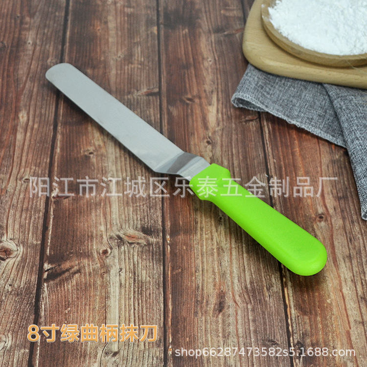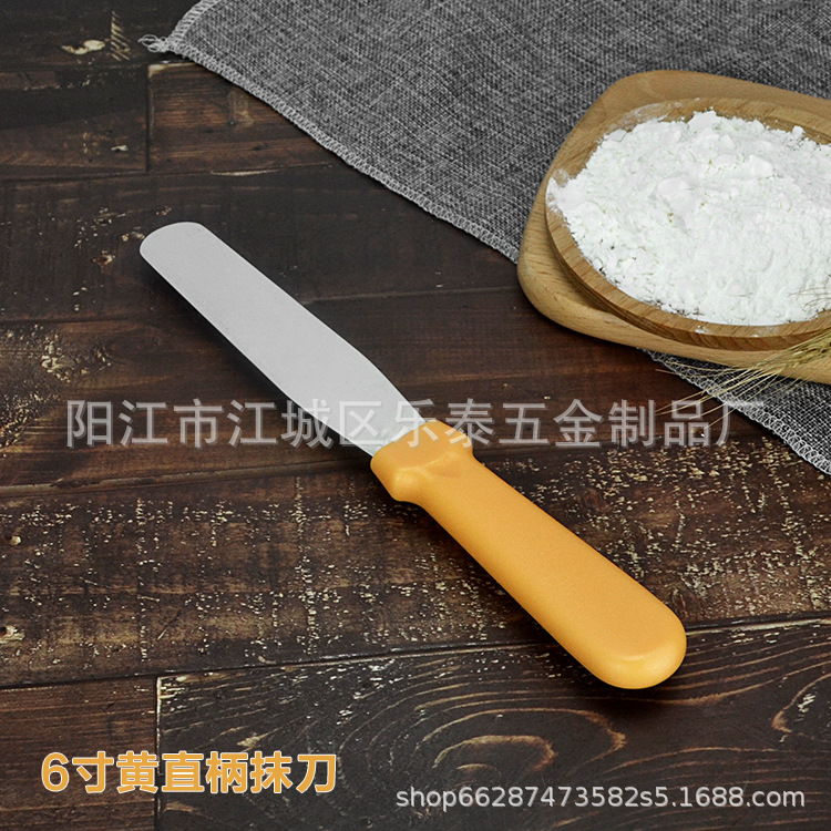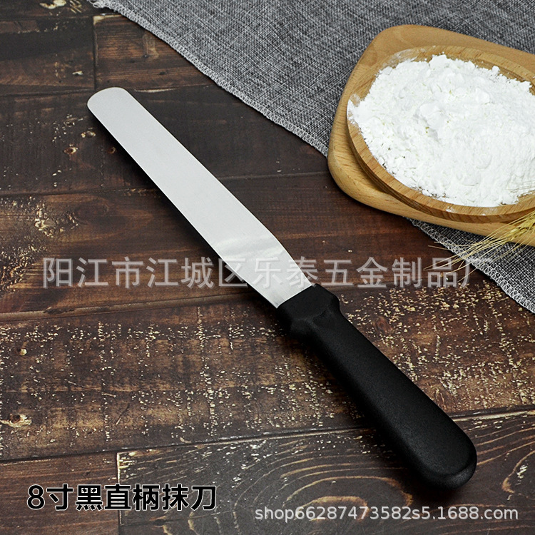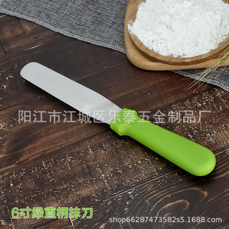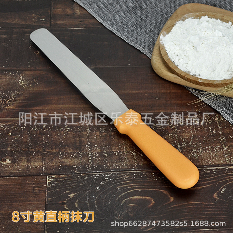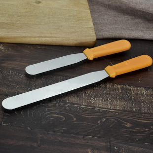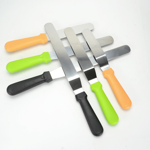 공장 도매 케이크 주걱 스테인레스 스틸 크림 나이프 플라스틱 손잡이 납작 스크레이퍼 스트레이트 8 인치스토어 가기