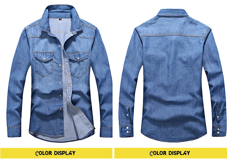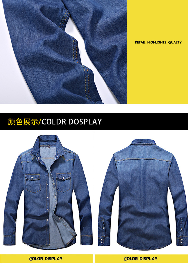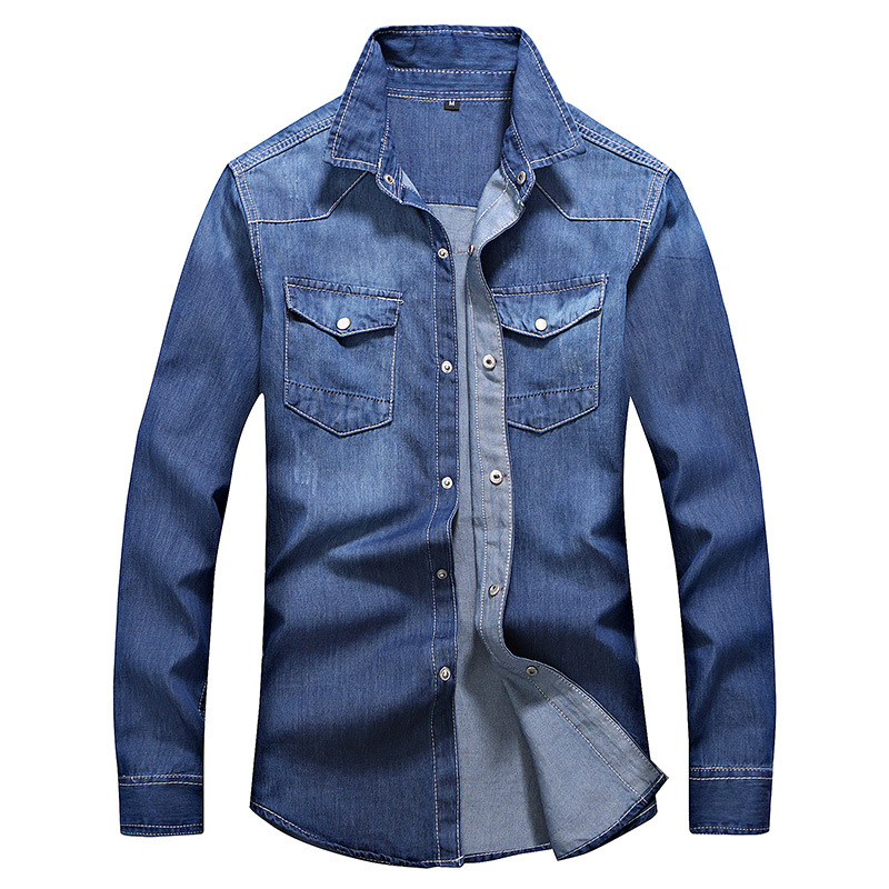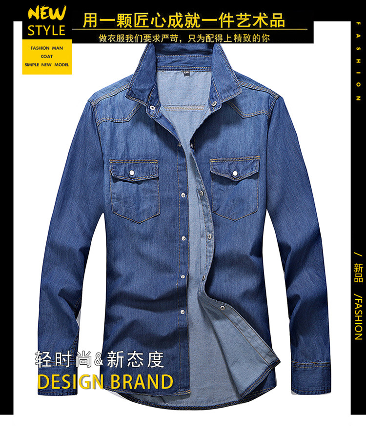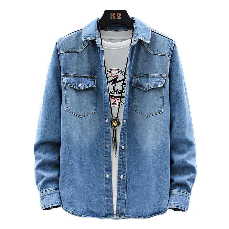 크로스-보더 AliExpress 가을 신상품 남자의 영국 단색 데님 긴팔 셔츠 남자의 트렌디 느슨한 셔츠 데님 옷스토어 가기