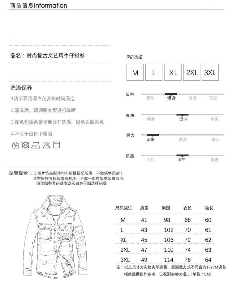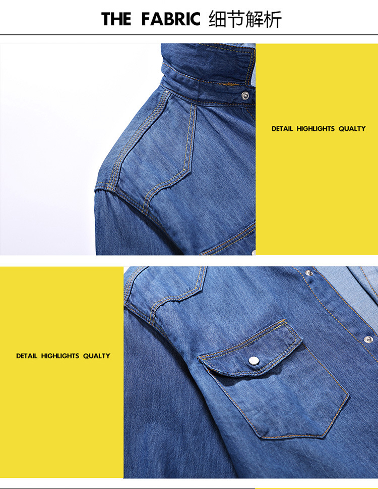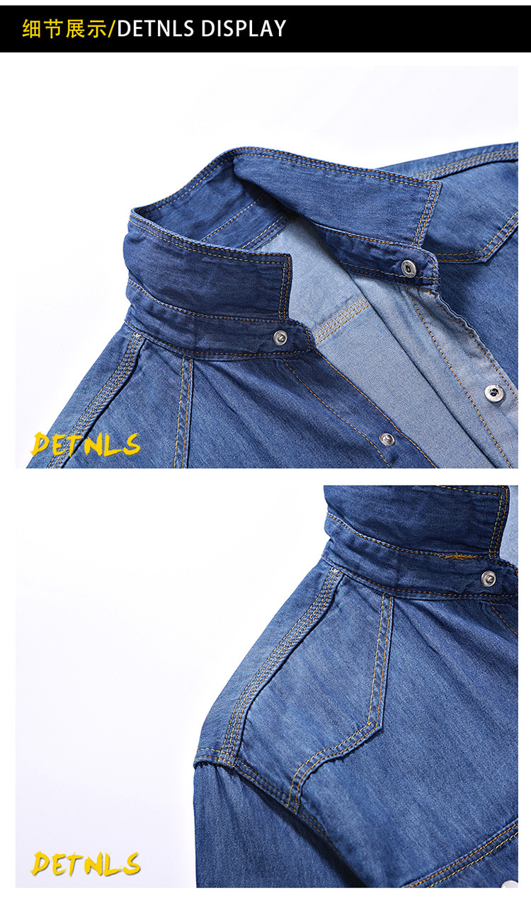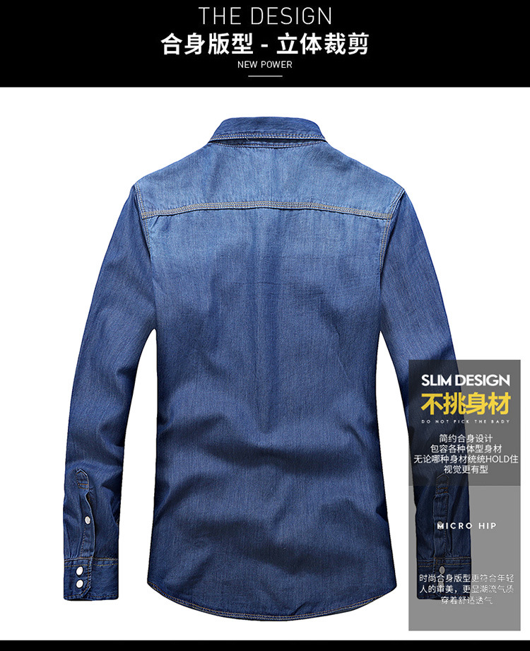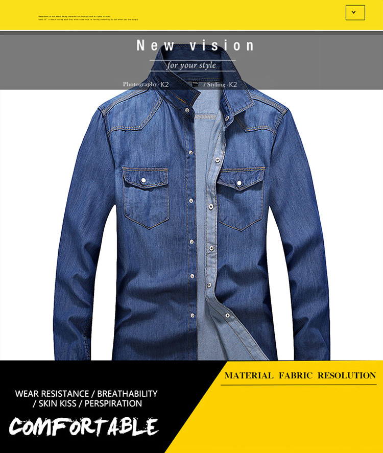 크로스-보더 AliExpress 가을 신상품 남자의 영국 단색 데님 긴팔 셔츠 남자의 트렌디 느슨한 셔츠 데님 옷스토어 가기