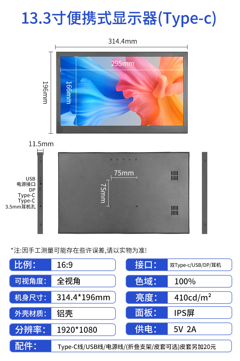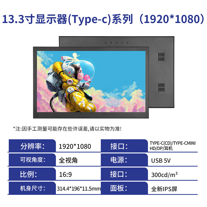 • 13.3inch TYPEC/HDMI1920*1080