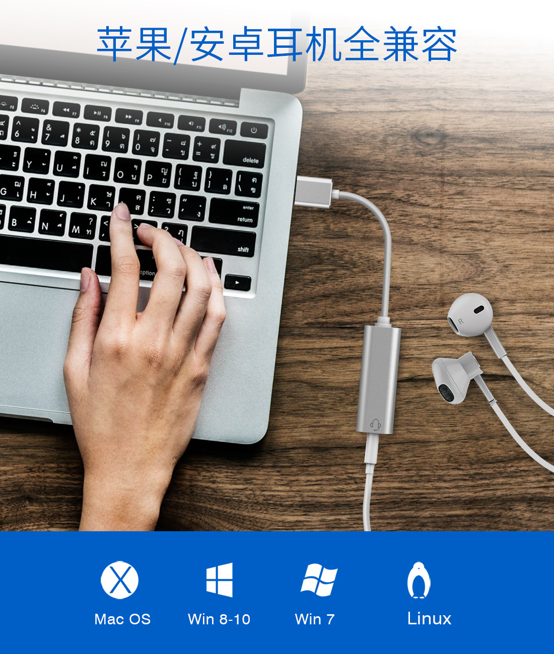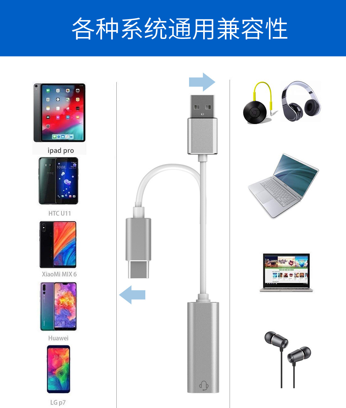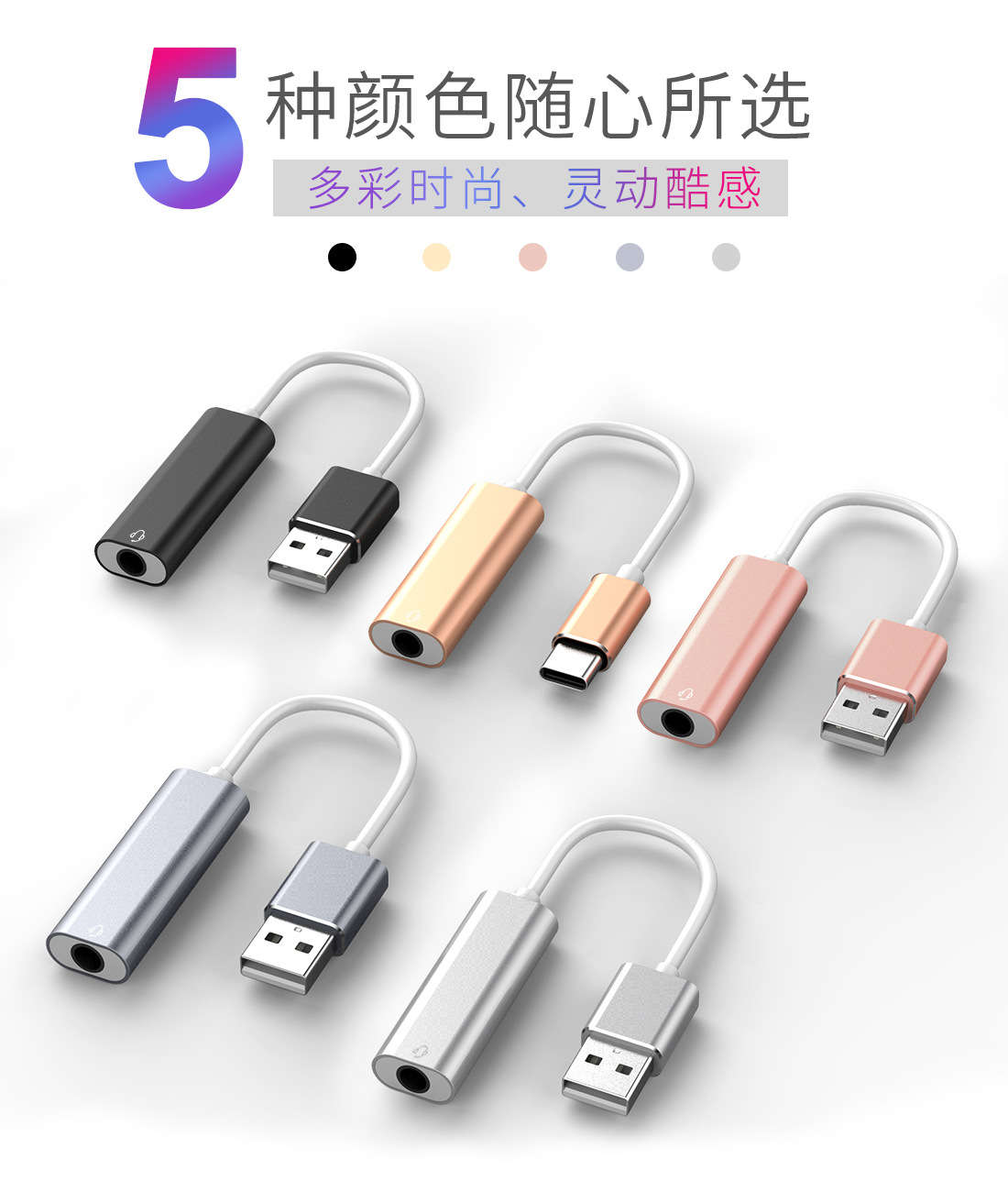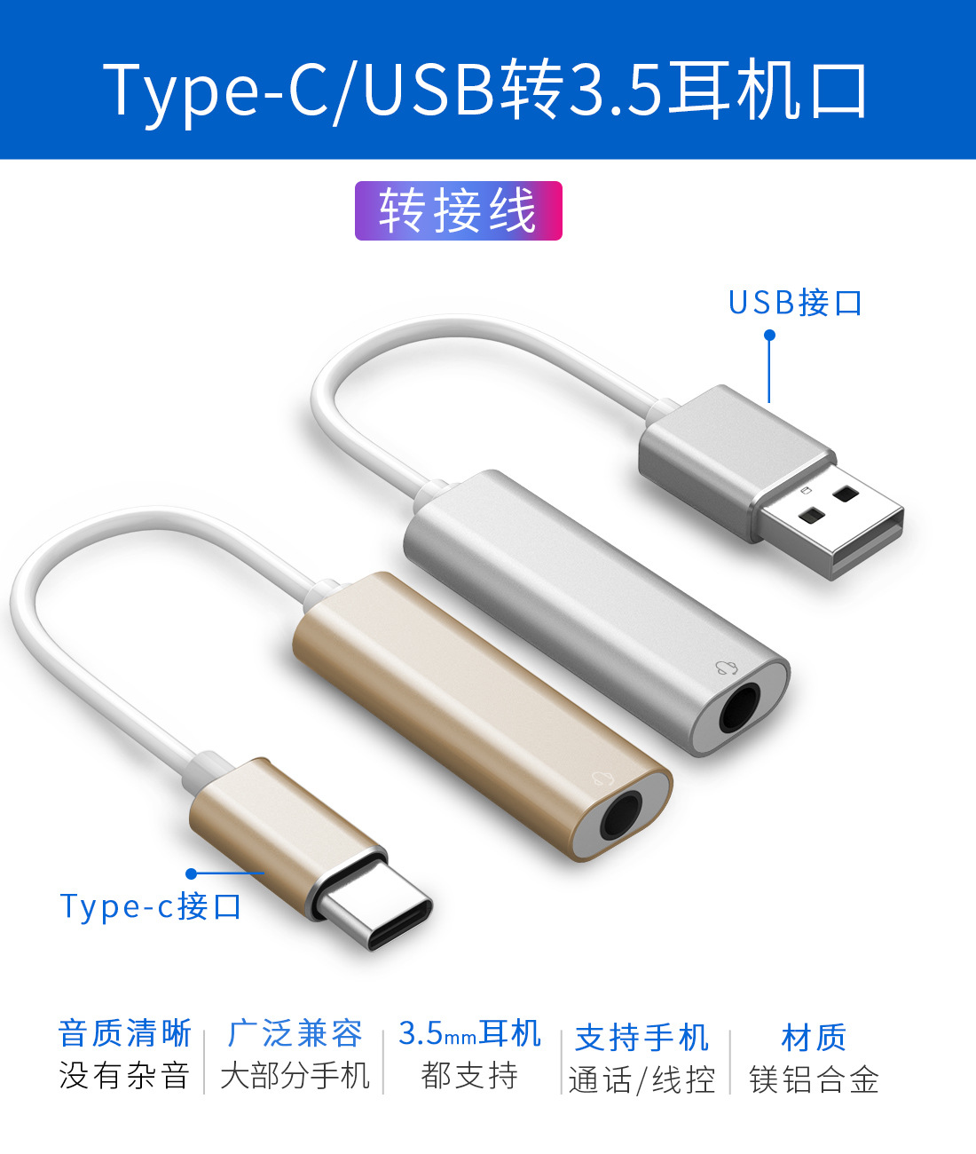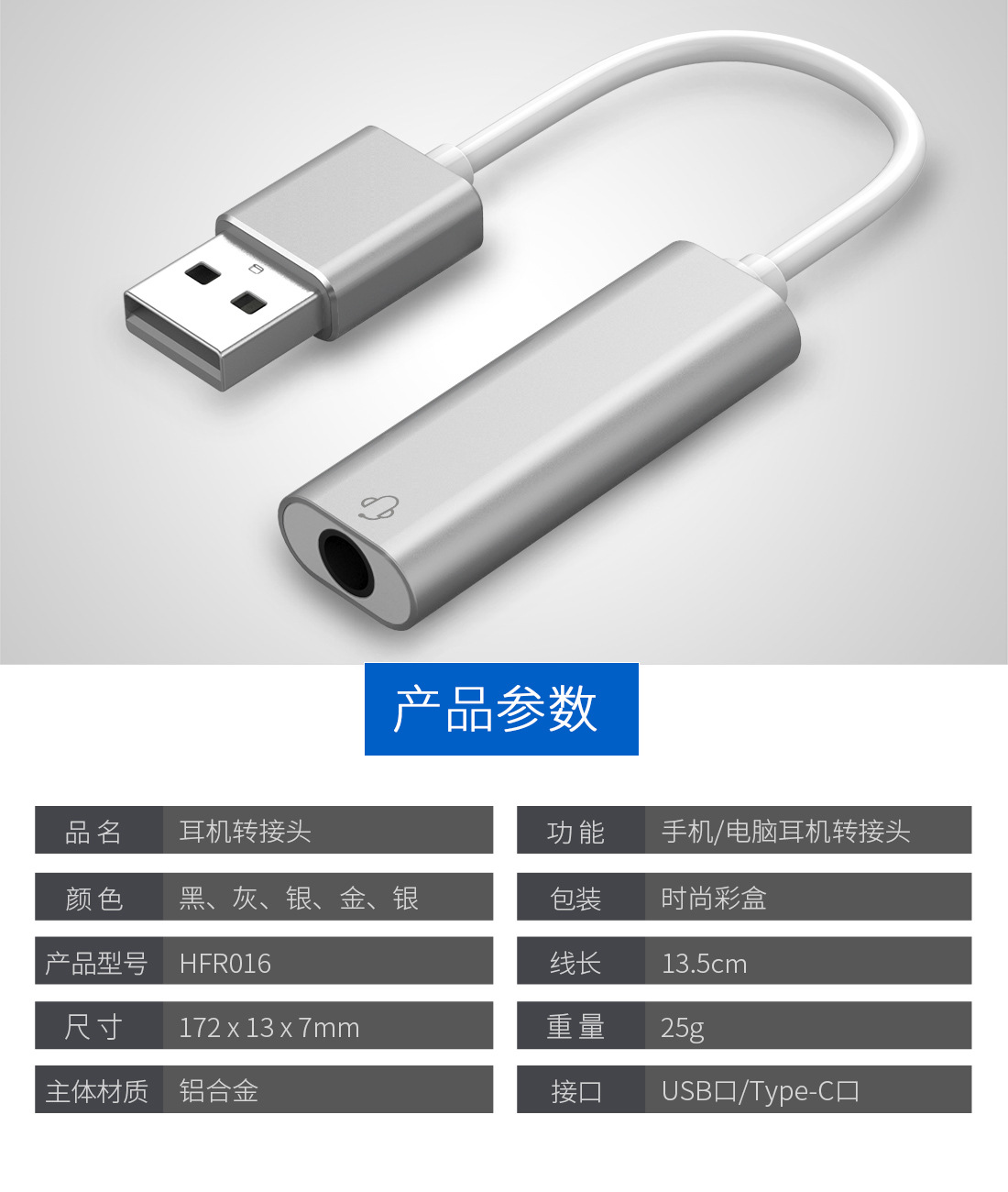 휴대폰 어댑터 싱글 포트 USB-3.5mm 오디오 알루미늄 합금 사운드 카드 TYPE-C 컴퓨터 헤드폰 어댑터 케이블스토어 가기