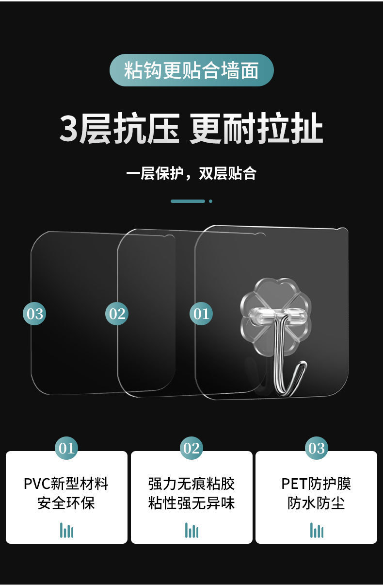 새로운 유형의 후크, 아크릴 후크, 강력 접착식 무타공 후크, 강력한 내하중력, 투명 후크스토어 가기