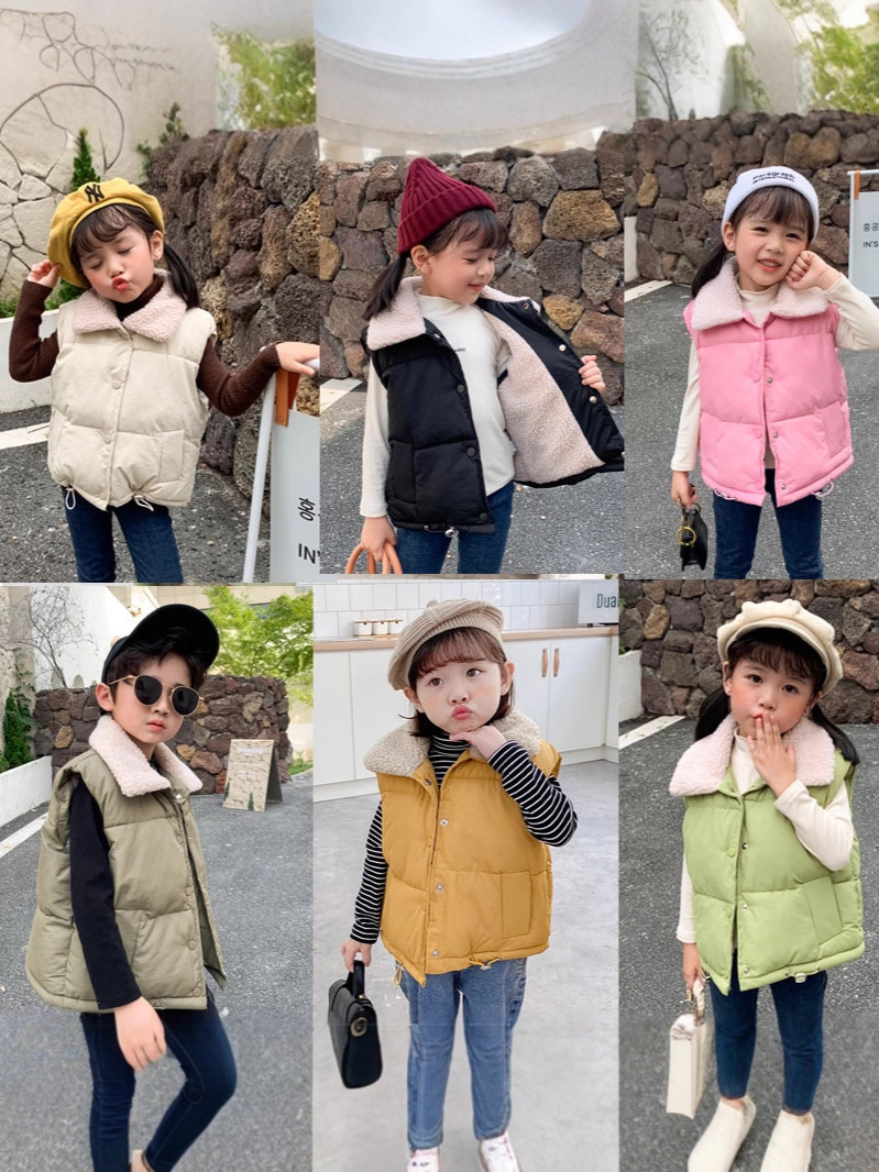 중소형 아동용 벨벳 두꺼운 조끼, 남아용 겉옷, 양털 조끼, 겨울옷, 여아용 아동용 다운 면 조끼스토어 가기