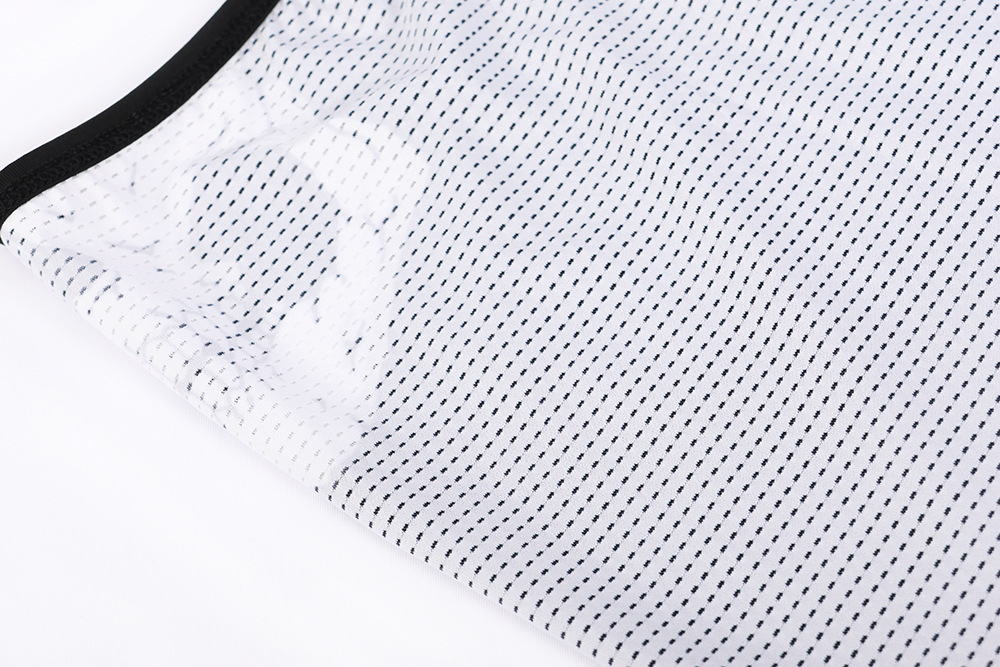 产品特点:采用冰丝网眼面料,面料舒适手感柔软舒适,弹性好,吸汗透气性能好。