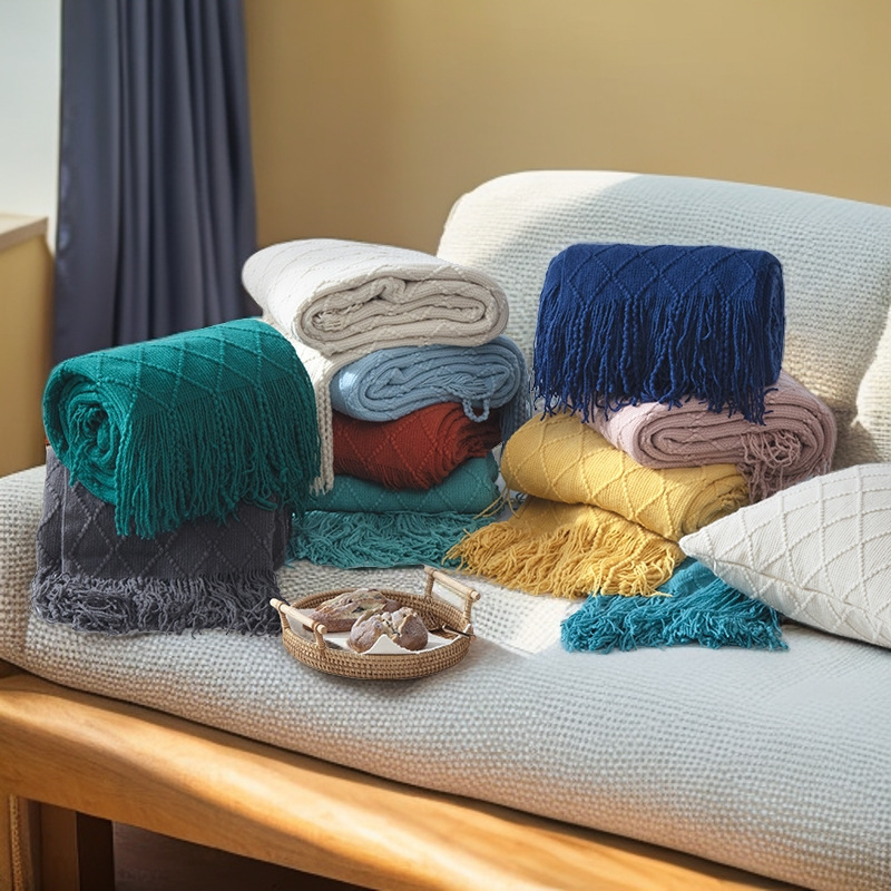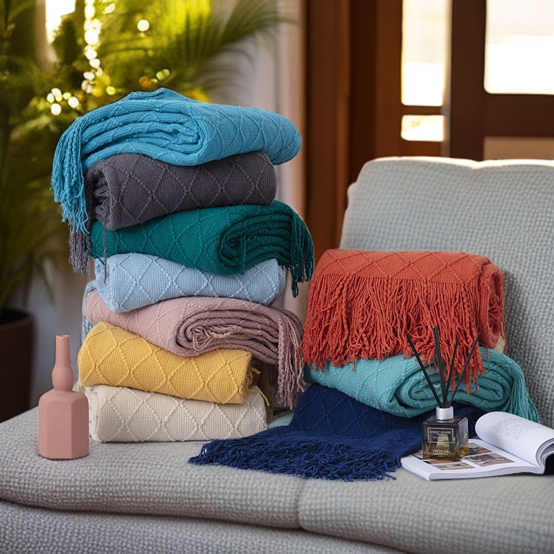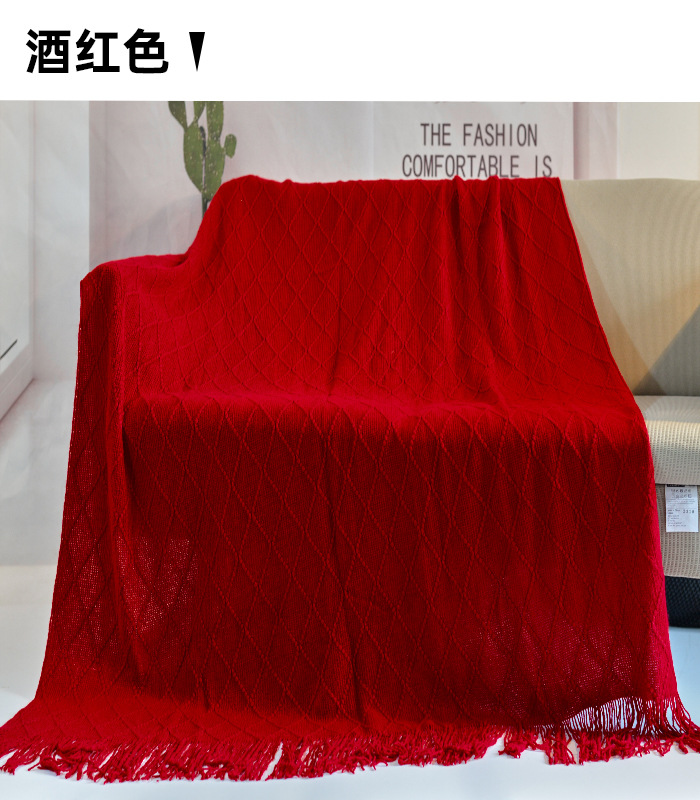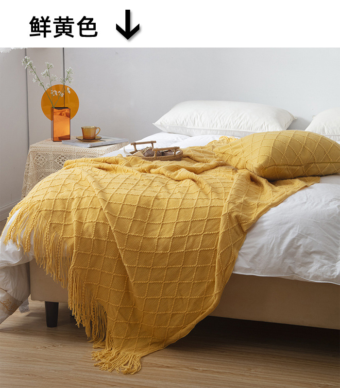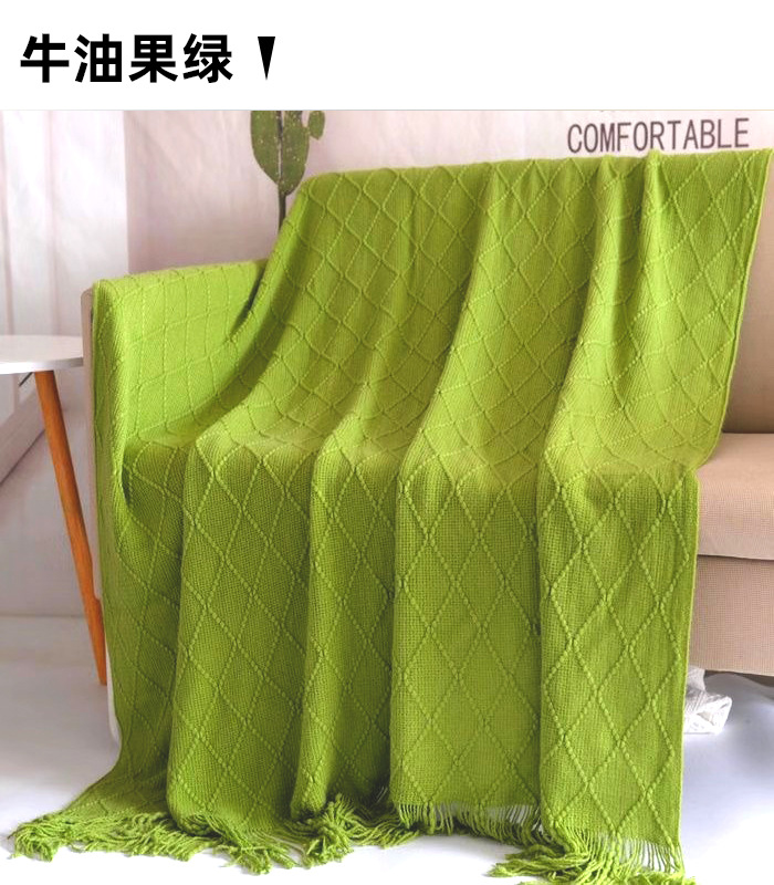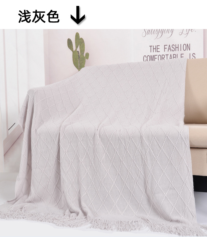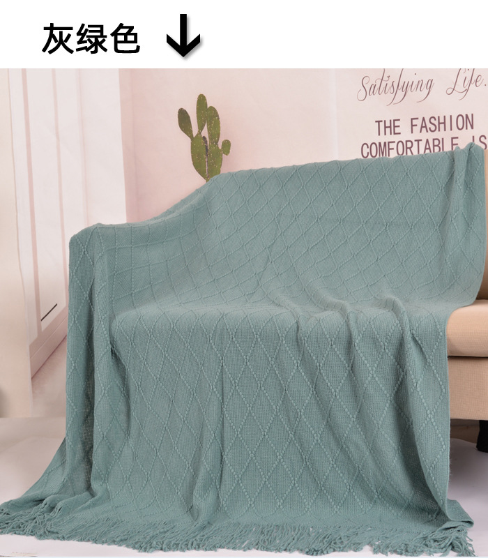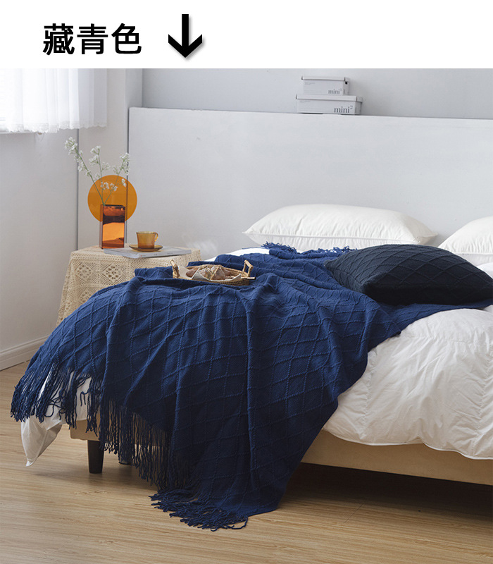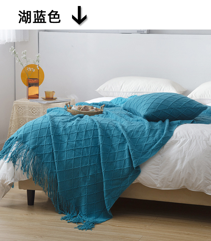 C10 대형 다이아몬드 무늬 레저 담요 인스 스타일 단색 니트 담요 긴 사이즈 민슈쿠 침대 끝 담요 여름 담요 항공 담요