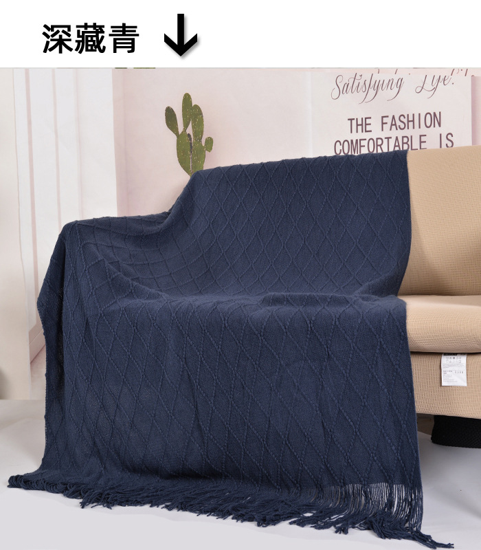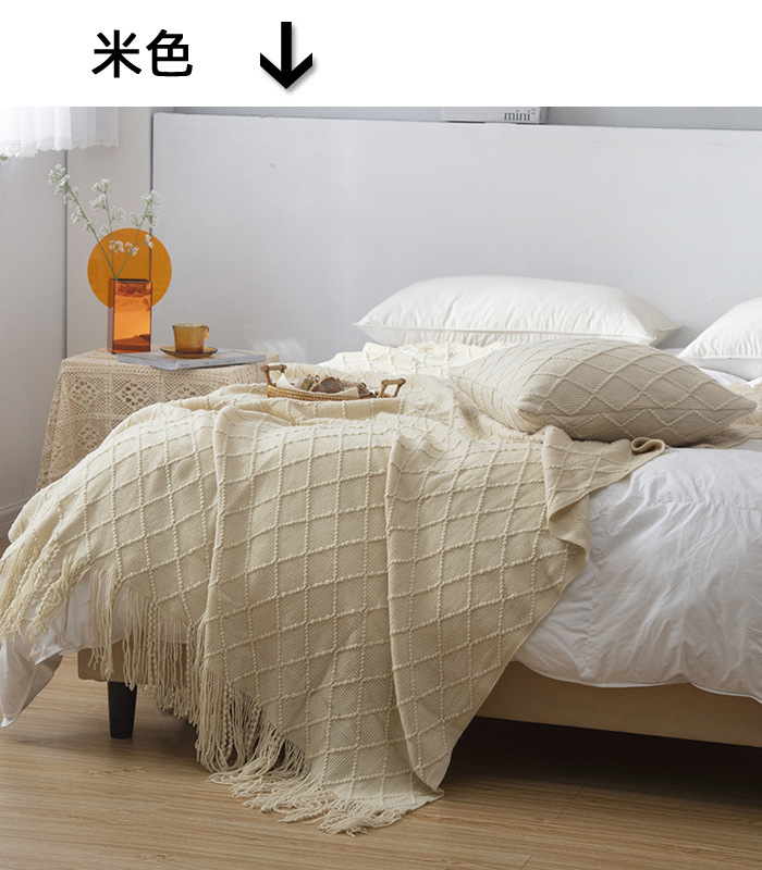 C10 대형 다이아몬드 무늬 레저 담요 인스 스타일 단색 니트 담요 긴 사이즈 민슈쿠 침대 끝 담요 여름 담요 항공 담요스토어 가기