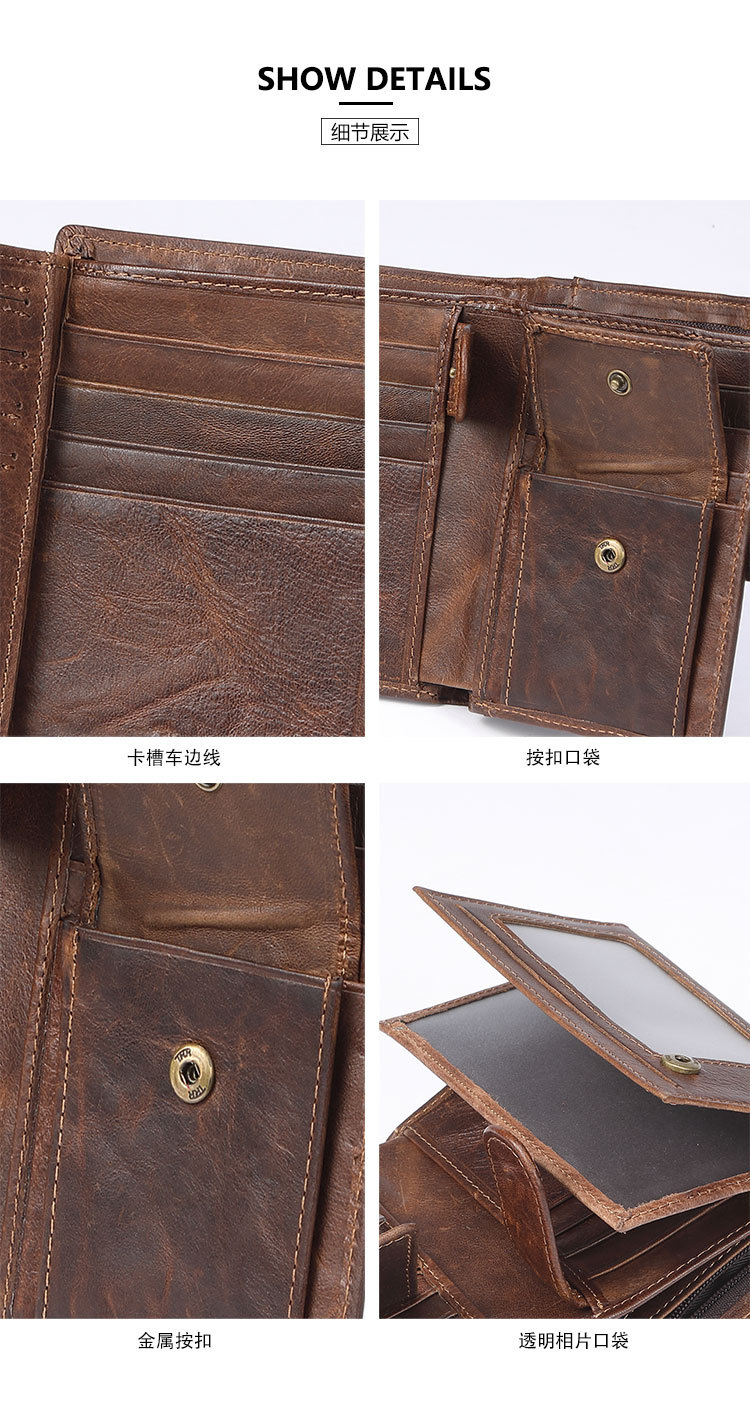 국경 간 남성용 소가죽 동전 카드 홀더 rfid 캐주얼 복고풍 가죽 클러치 백 남성용 대용량 멀티 카드 슬롯 지갑스토어 가기