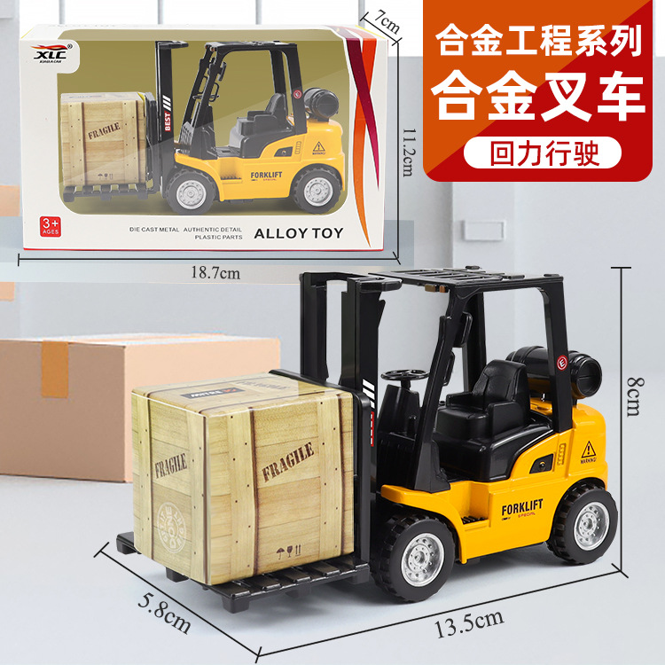 도매 시뮬레이션 1:50 엔지니어링 풀 백 지게차 어린이 리프트 가능 지게차 소년 모델 장난감 컬러 박스스토어 가기
