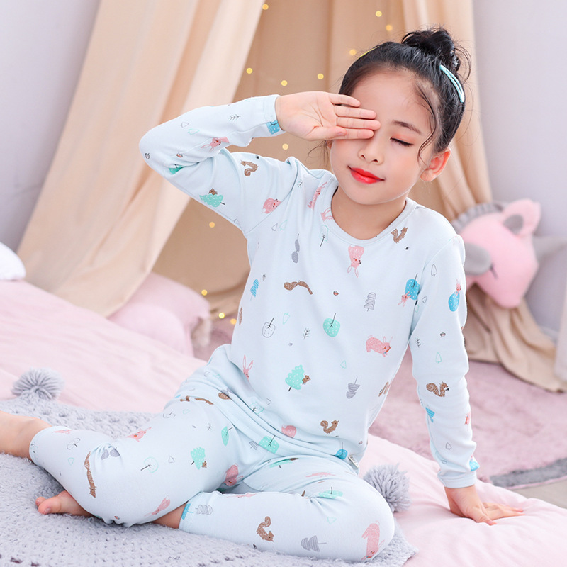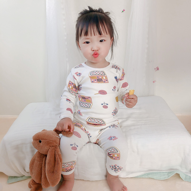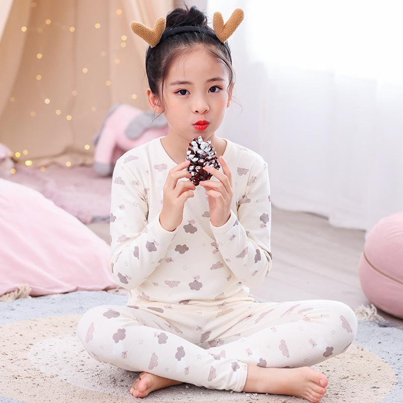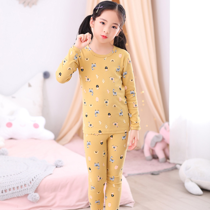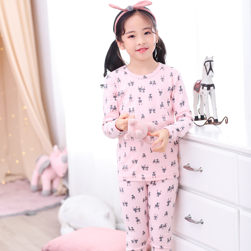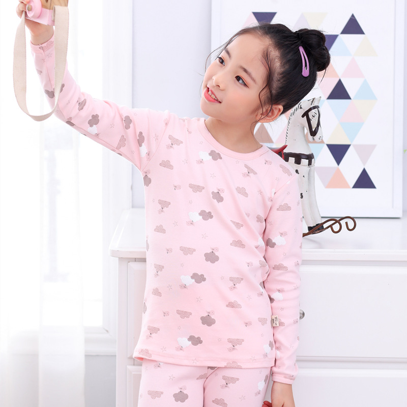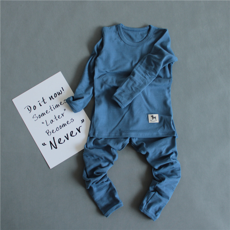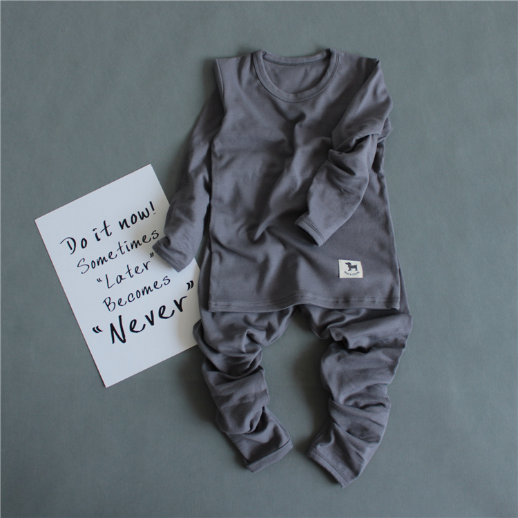 어린이 Shvelvet면 속옷 세트 단색 중간 대형 어린이 가을 의류 및 바지 면 스웨터 순면 가정 의류 가을과 겨울