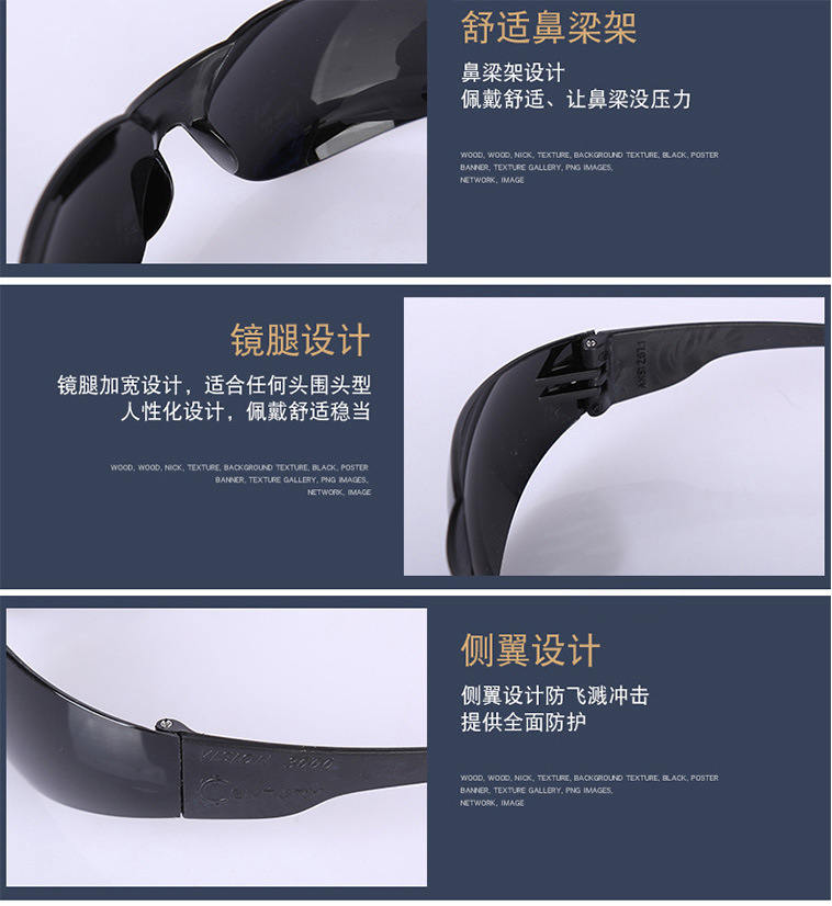 防飞溅、防冲击、防尘、防沙;适合氩弧焊、气焊、电焊等劳保行业。