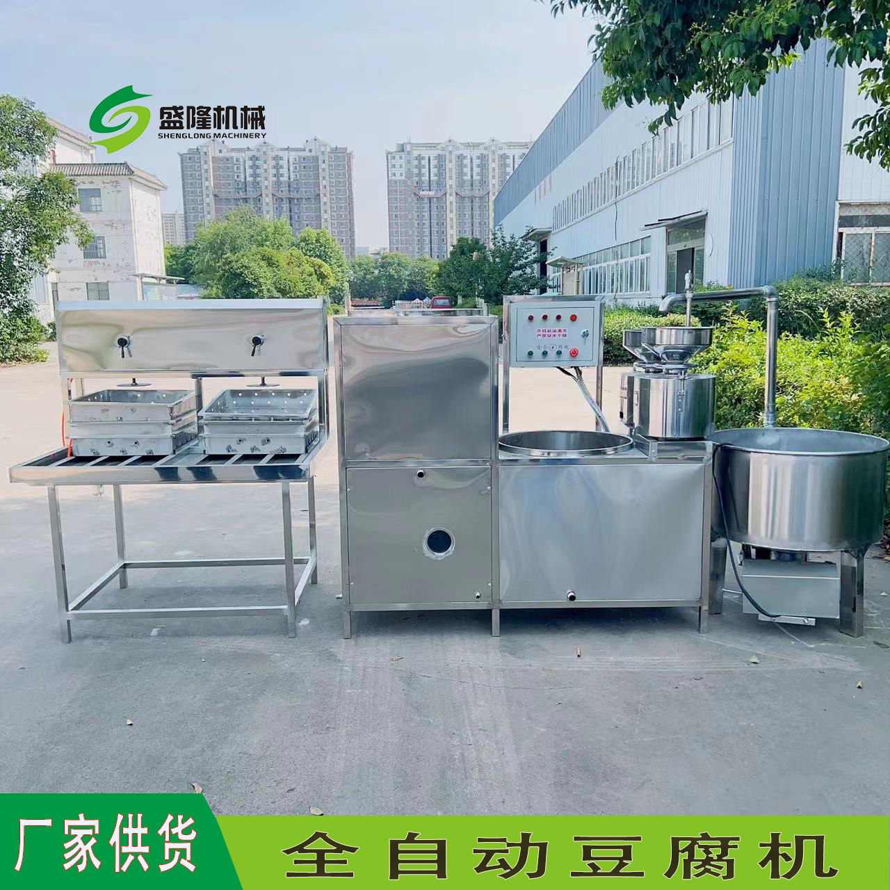 盛隆机械全自动豆腐机自动磨浆煮浆、自动压榨成型!盛隆机械全自动豆腐机厂家主营:新型豆腐机、多功能豆腐机、彩色果蔬豆腐机、卤水大豆腐机器、大型豆腐机、小型豆腐机等设备!