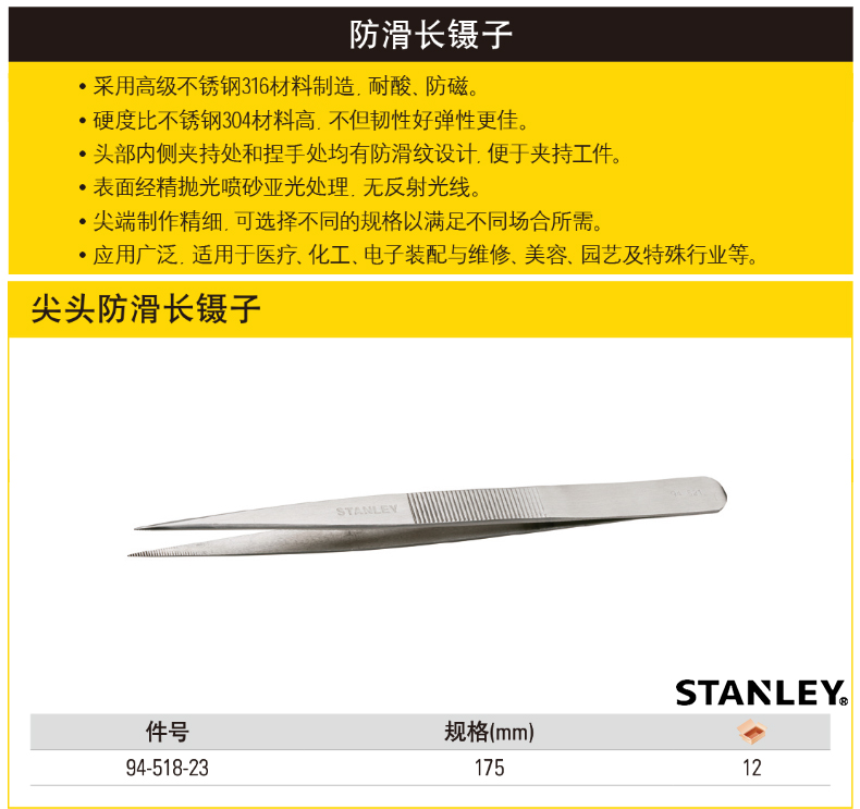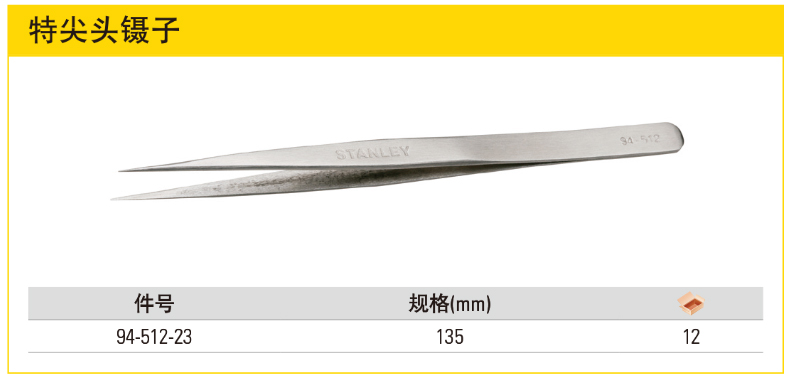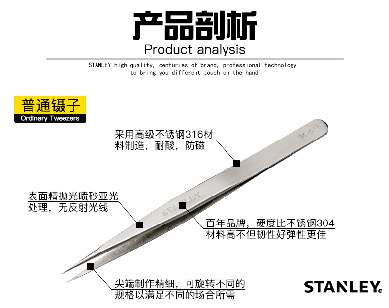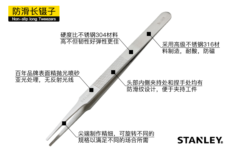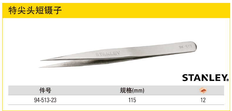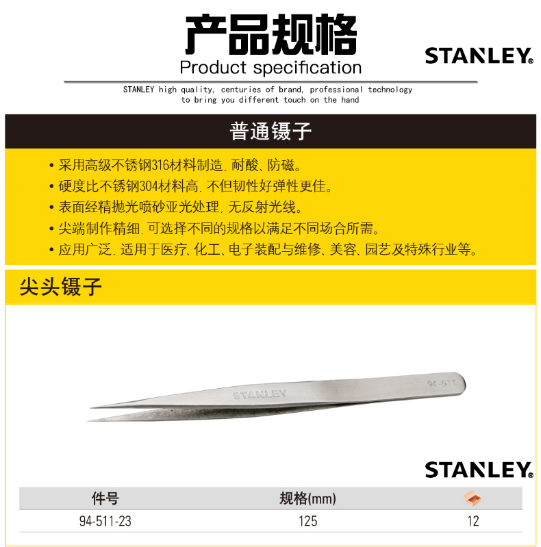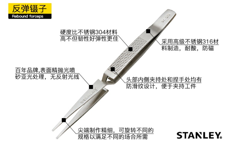 스탠리 특수 뾰족한 길고 짧은 핀셋 와이드 헤드 팔꿈치 리바운드 핀셋 94-511/521/514