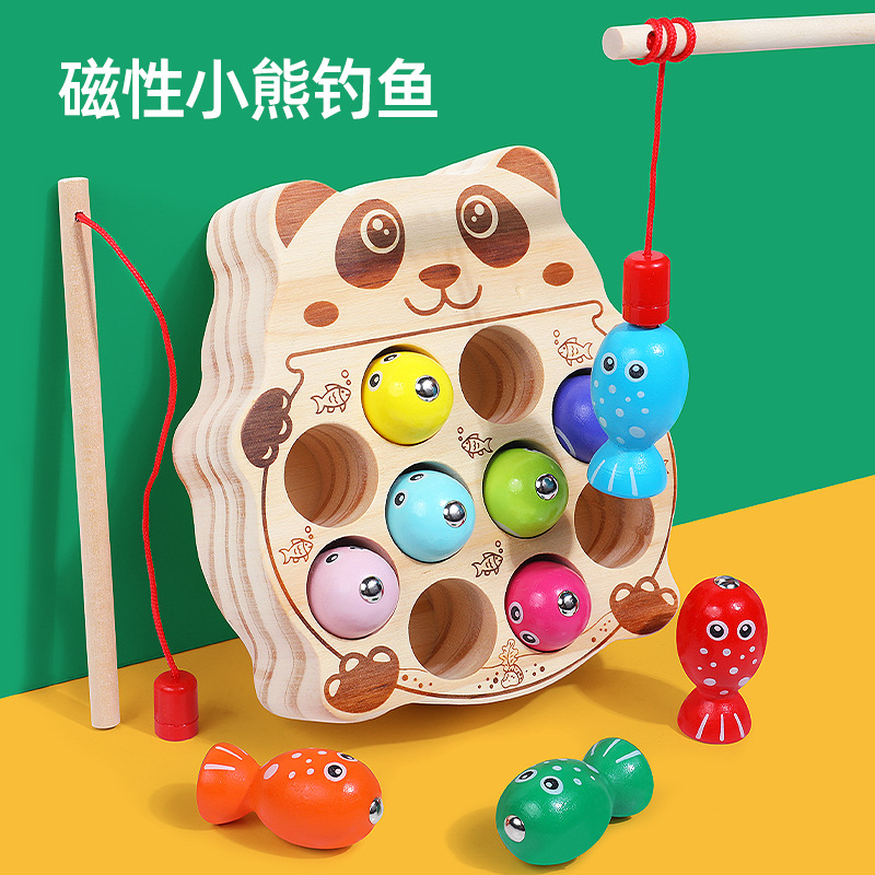 Cpc 어린이 교육 장난감 자기 새끼 고양이 낚시 게임 집중 훈련 나무 낚시 자기 장난감