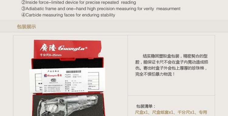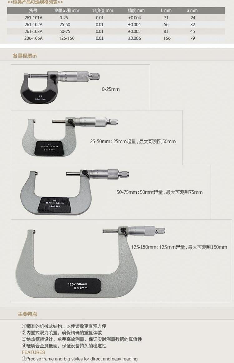 광루 기계식 외부 마이크로미터 0-25-50-75-150mm 나사 마이크로미터 와이어 카드 전자 센티미터