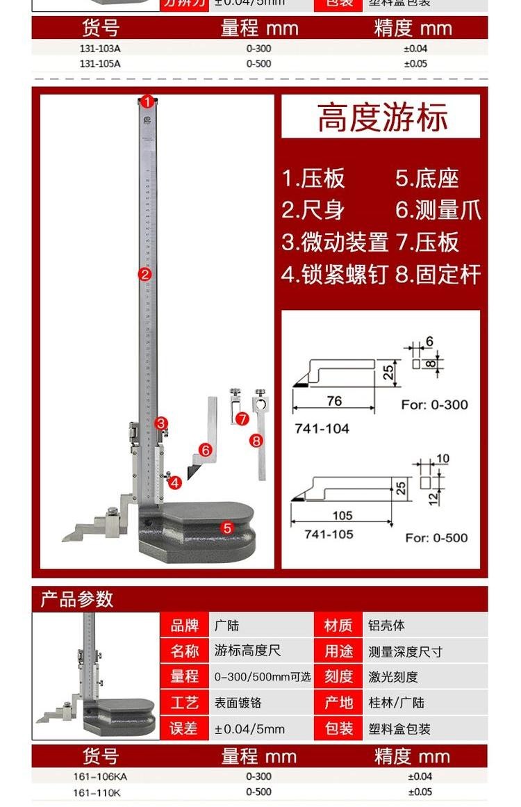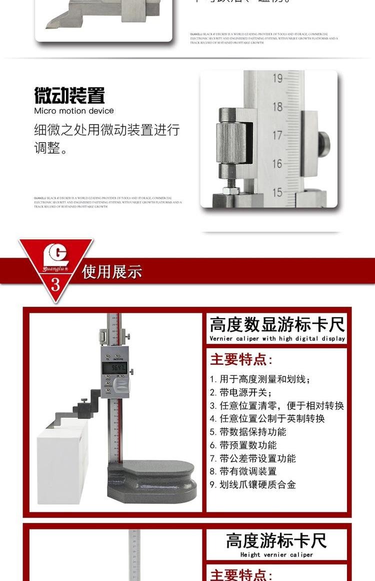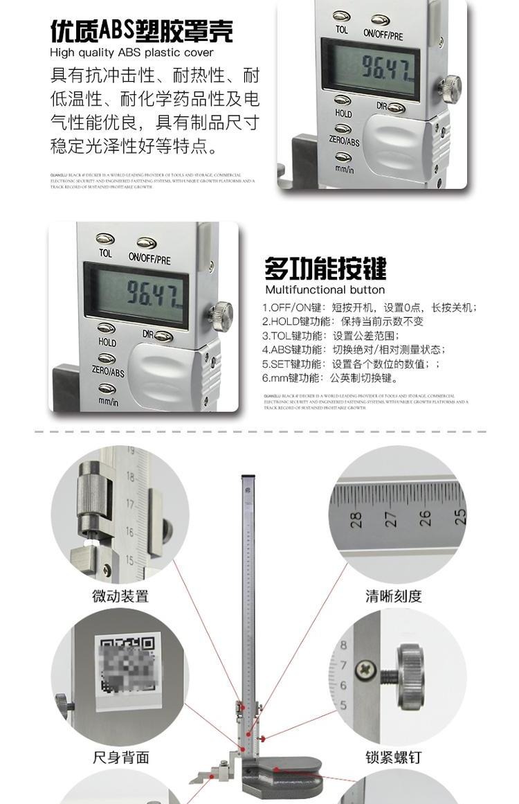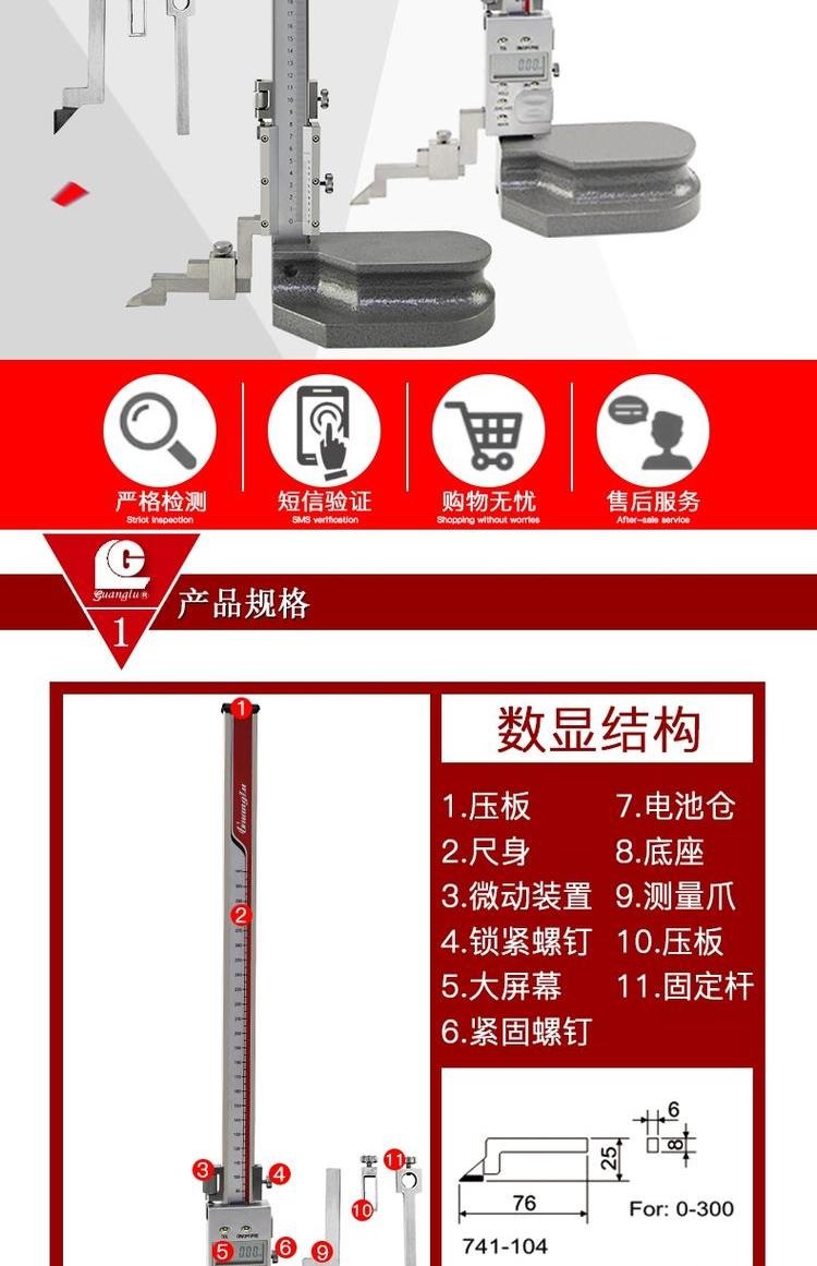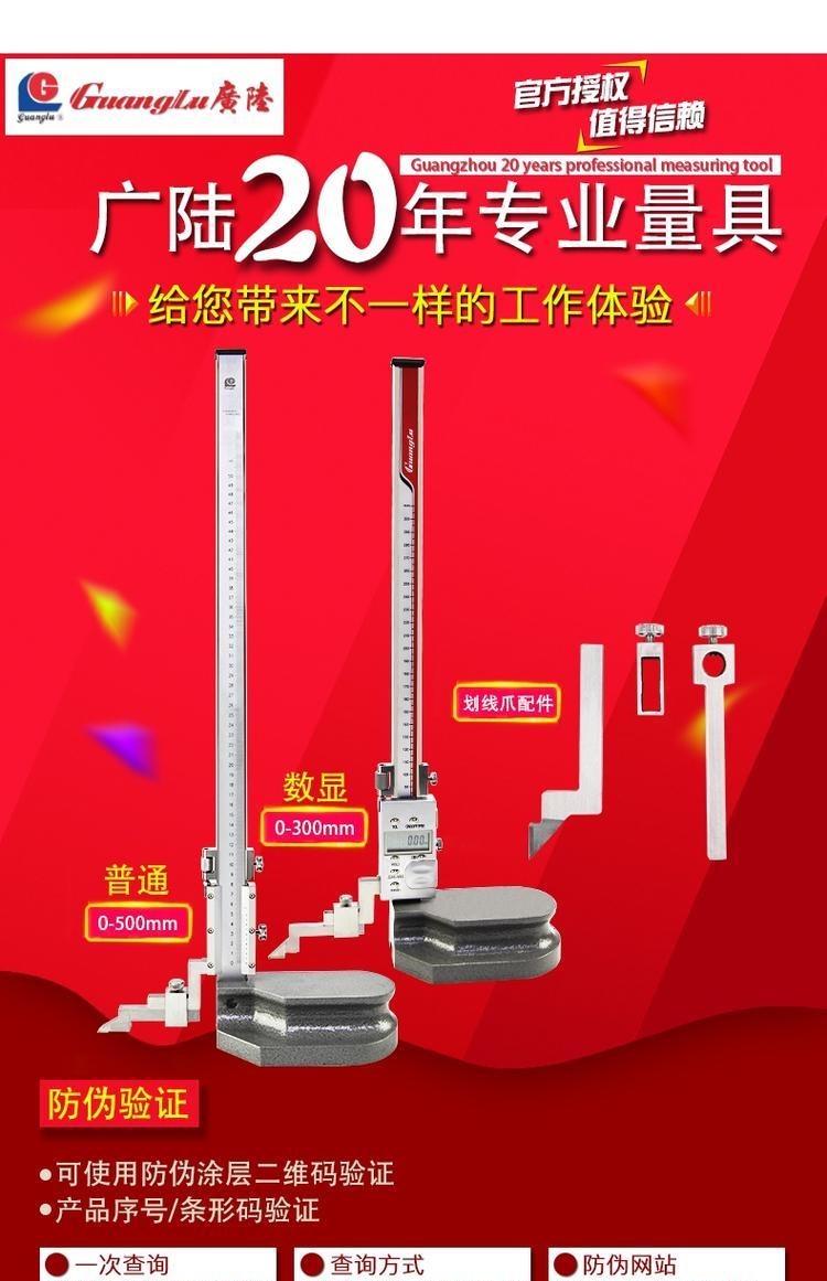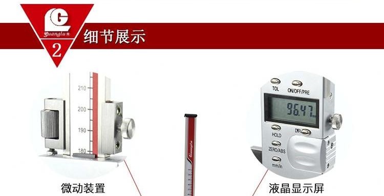 Guilin Guanglu 전자 디지털 버니어 높이 게이지 디지털 라인 게이지 0-300 500mm 200mm스토어 가기